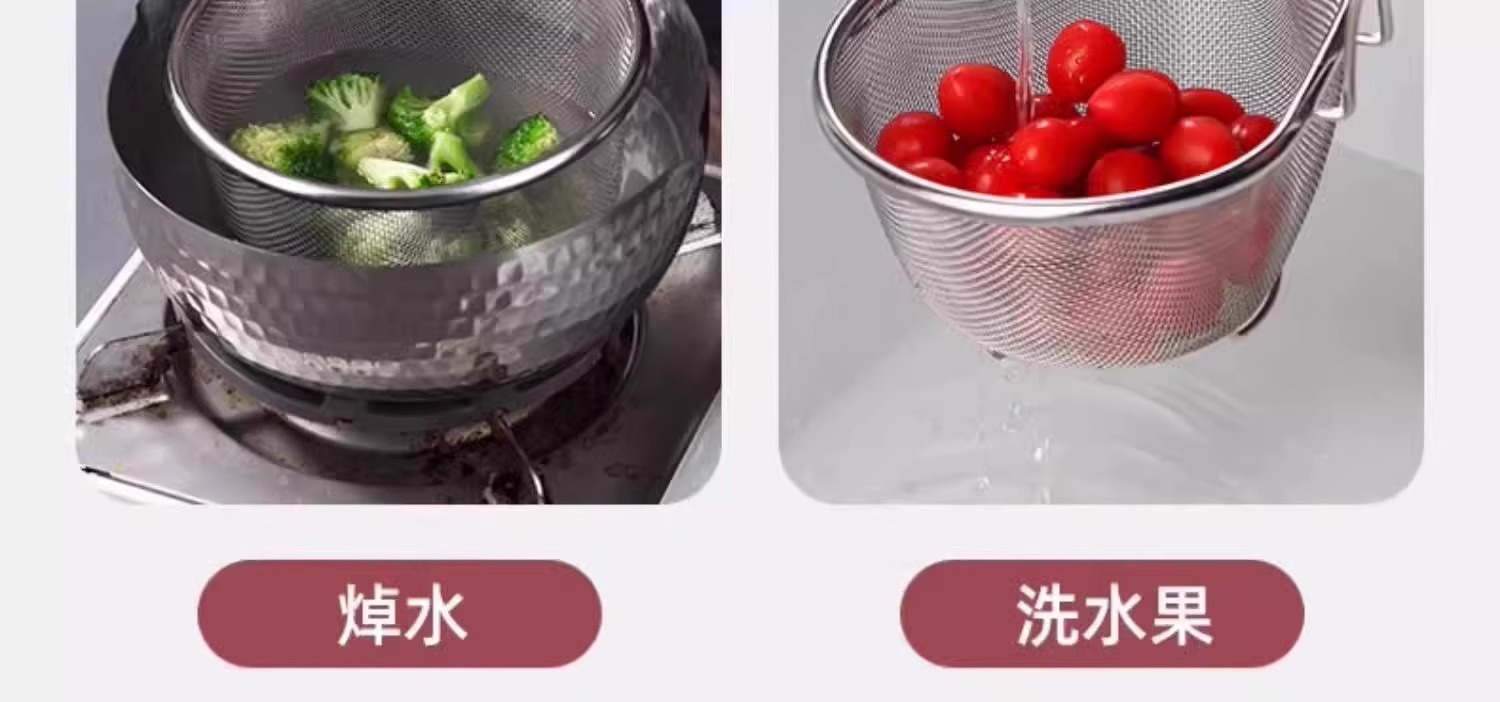 漏勺316不锈钢沥水篮家用厨房捞面勺细网煮面油炸漏网过滤网火锅