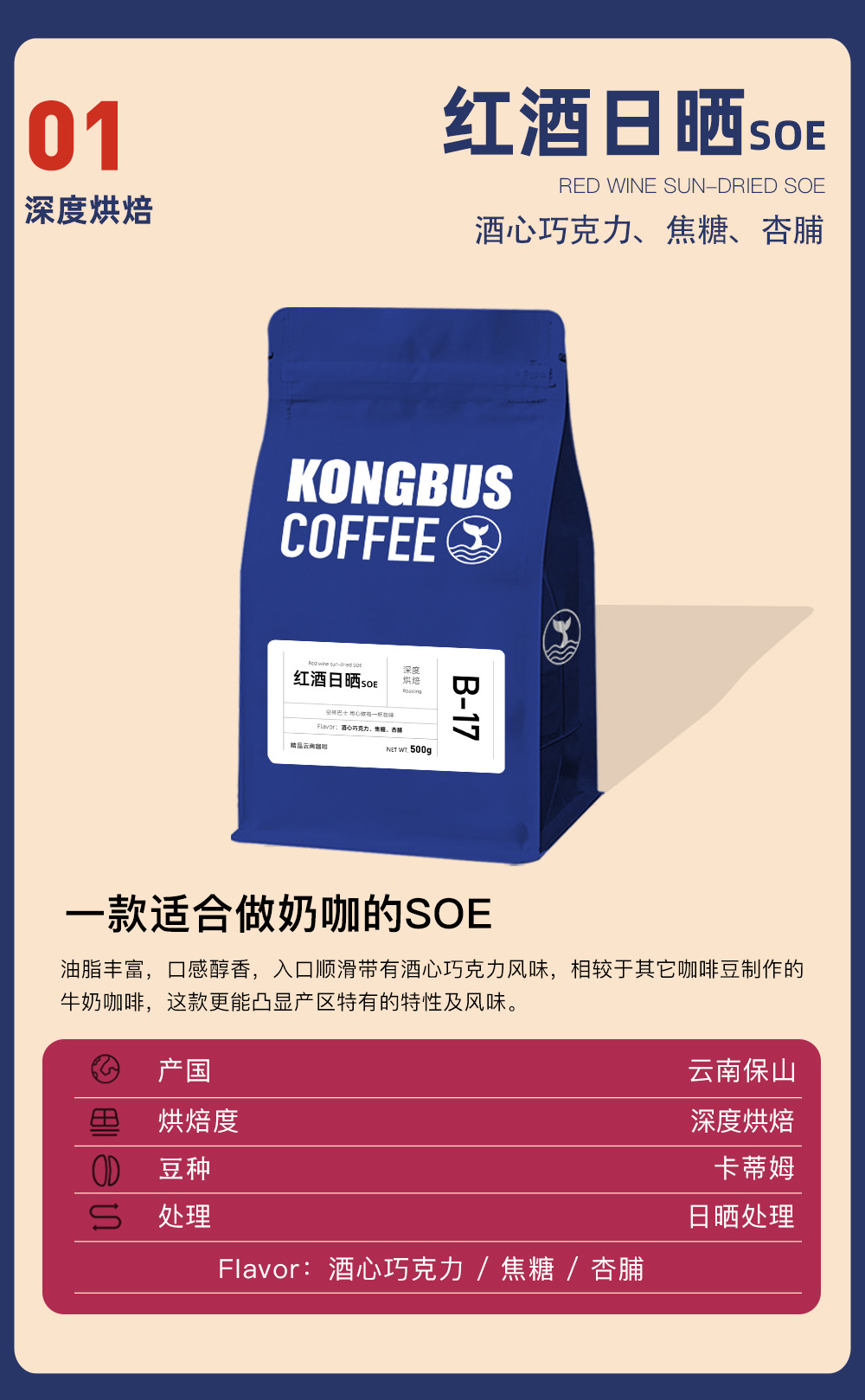 空杯巴士甄选云南红酒日晒soe热带水果精品商用咖啡豆200g/500g现