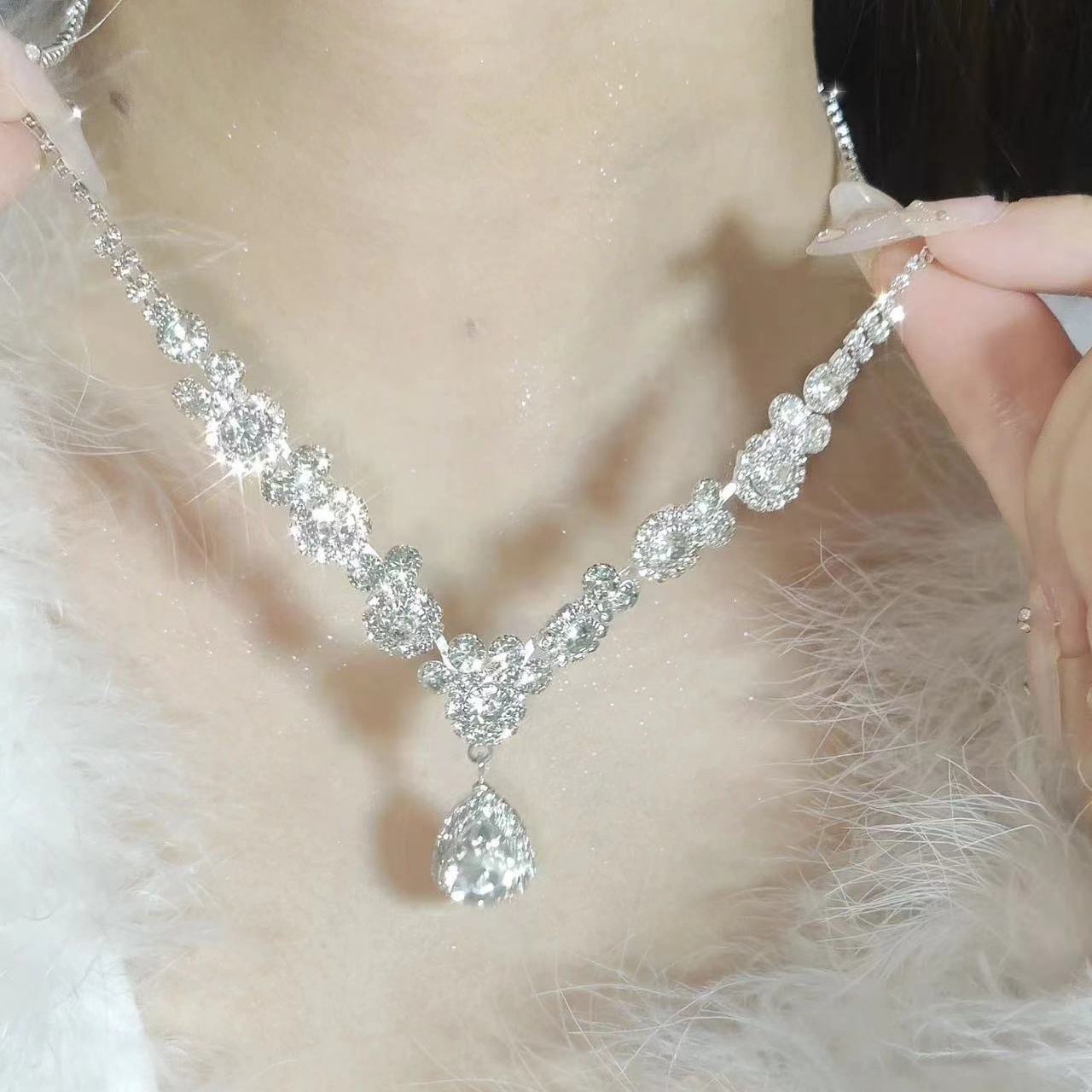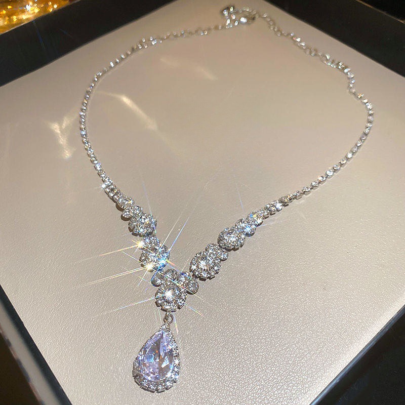 ライトラグジュアリージルコンフラッシュダイヤモンドウォータードロップネックレスイブニングドレスアクセサリー誕生日ウェディングドレスハイエンドライトラグジュアリーニッチ鎖骨チェーン女性用
