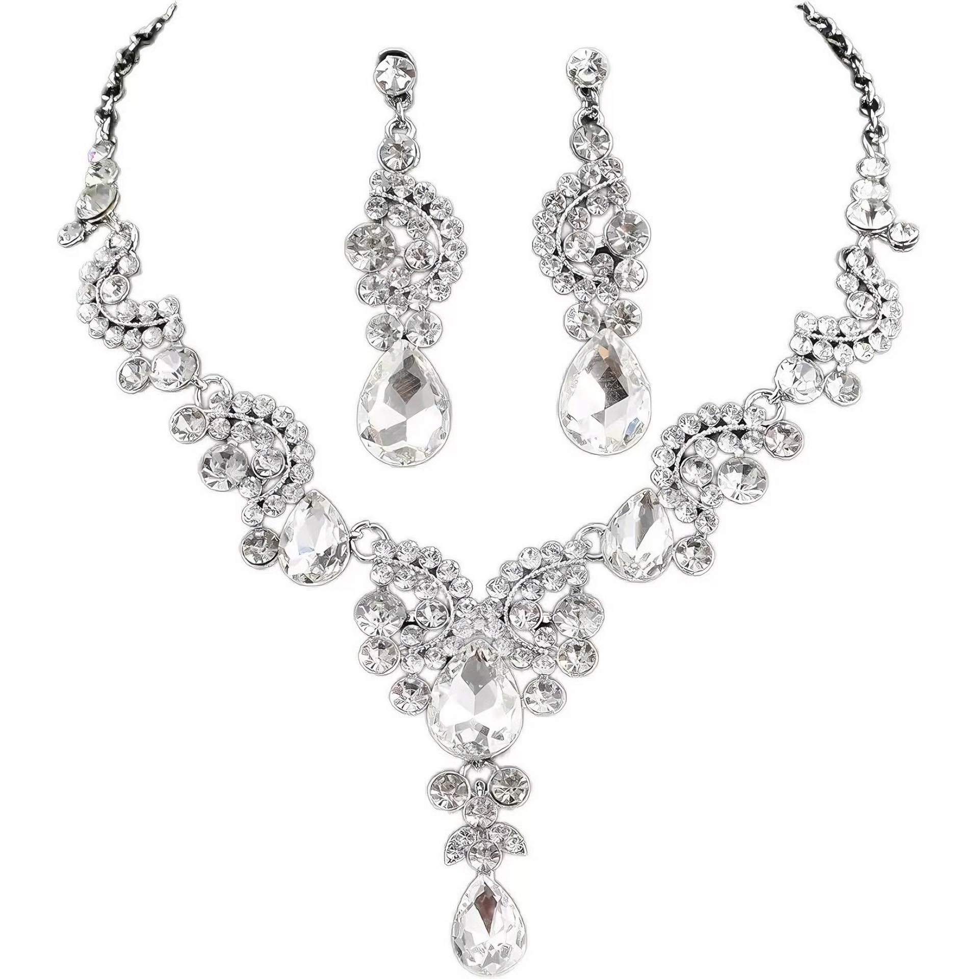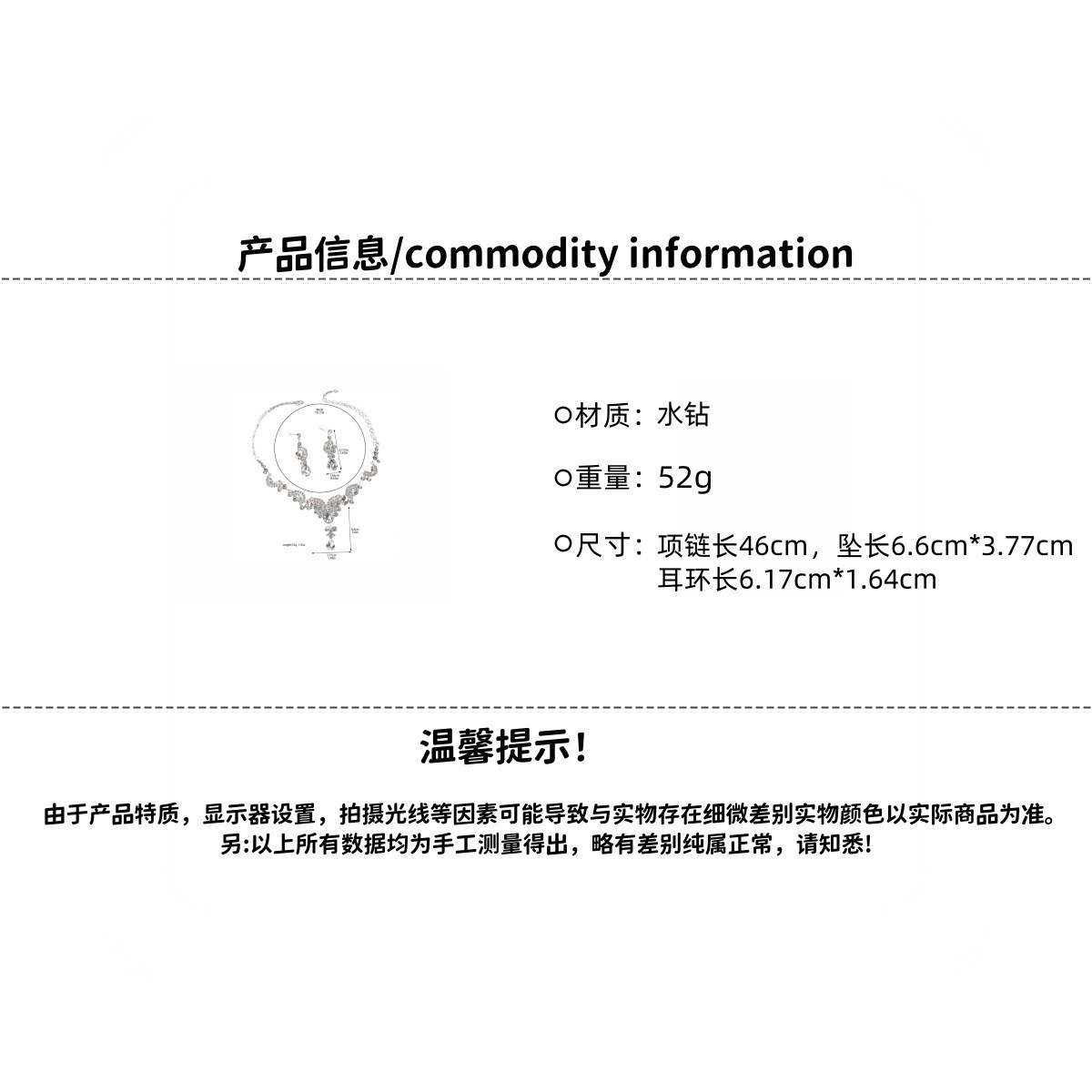 公主水滴流苏闪钻生日项链耳环套装女轻奢夸张新娘晚礼服颈链配饰