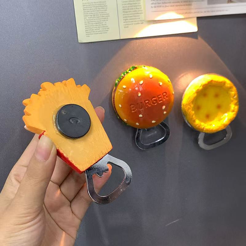 创意新款可爱家用开瓶器芝士玉米汉堡薯条奶酪造型树脂冰箱贴起子
