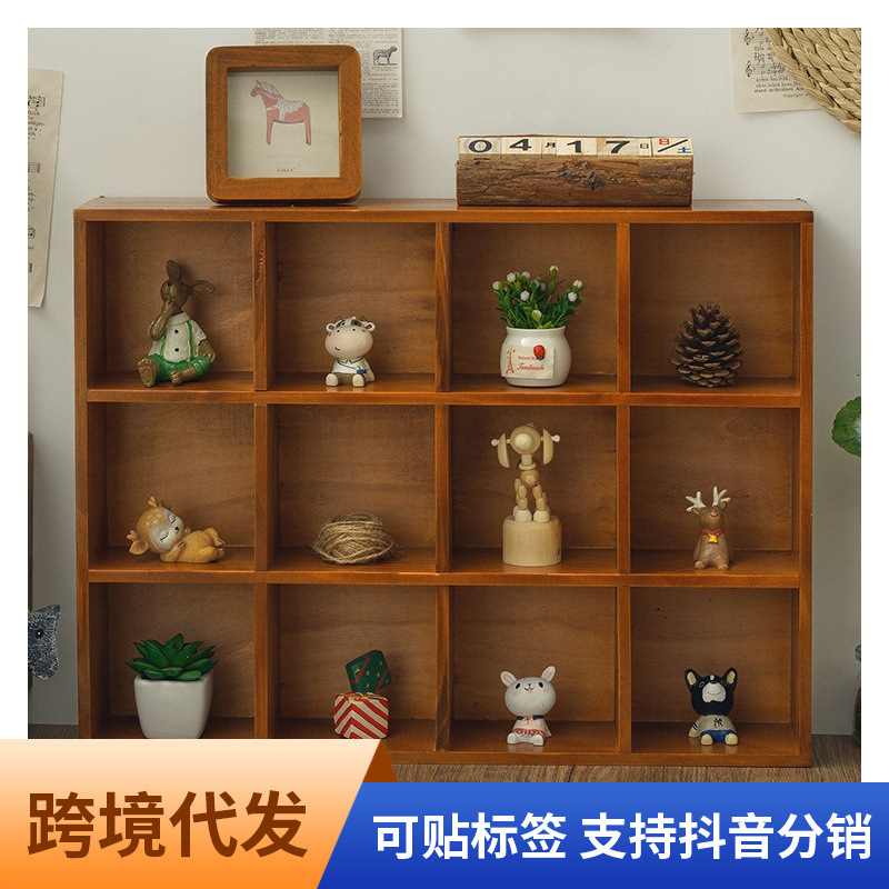 クロスボーダー無垢材デスクトップ物置棚十二宮格壁面壁掛け式収納ボックス手作りブラインドボックスカップ展示棚