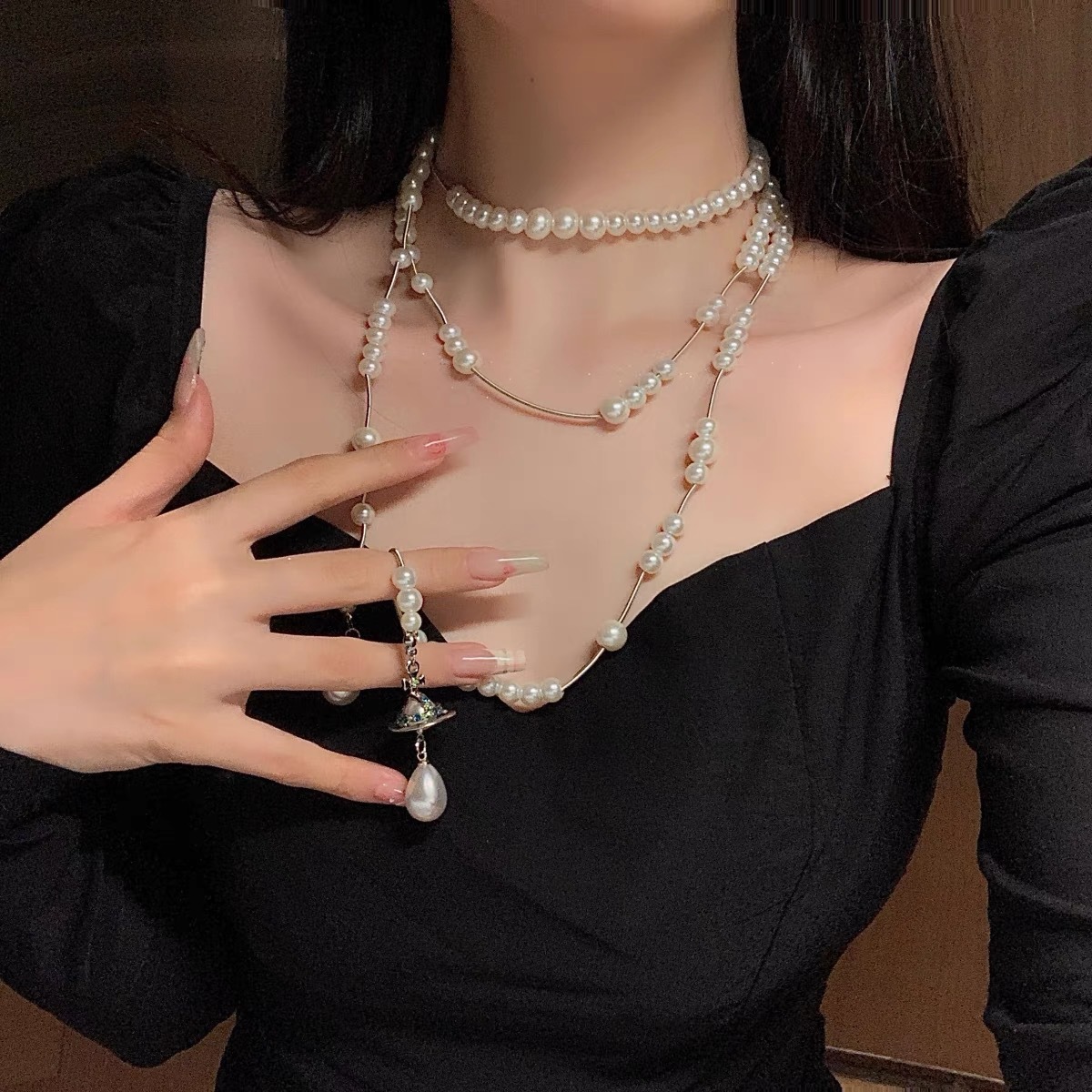 星球土星双层珍珠项链女choker轻奢高级感配饰多层小众锁骨颈链