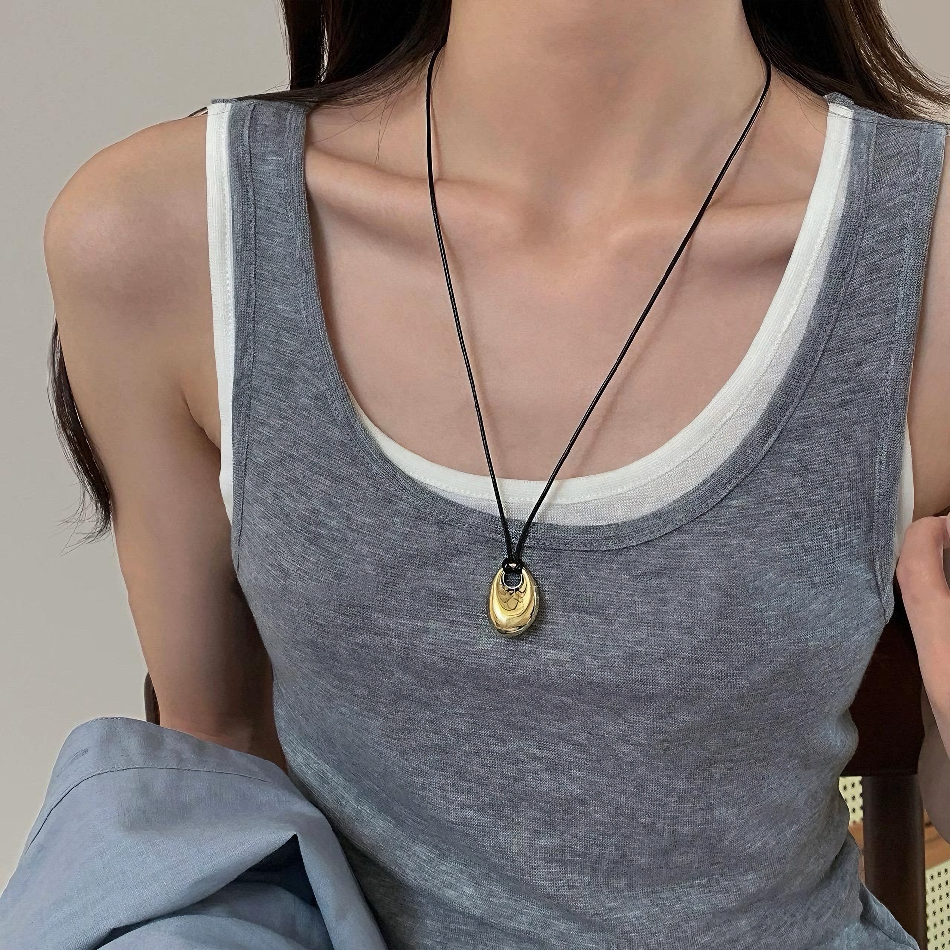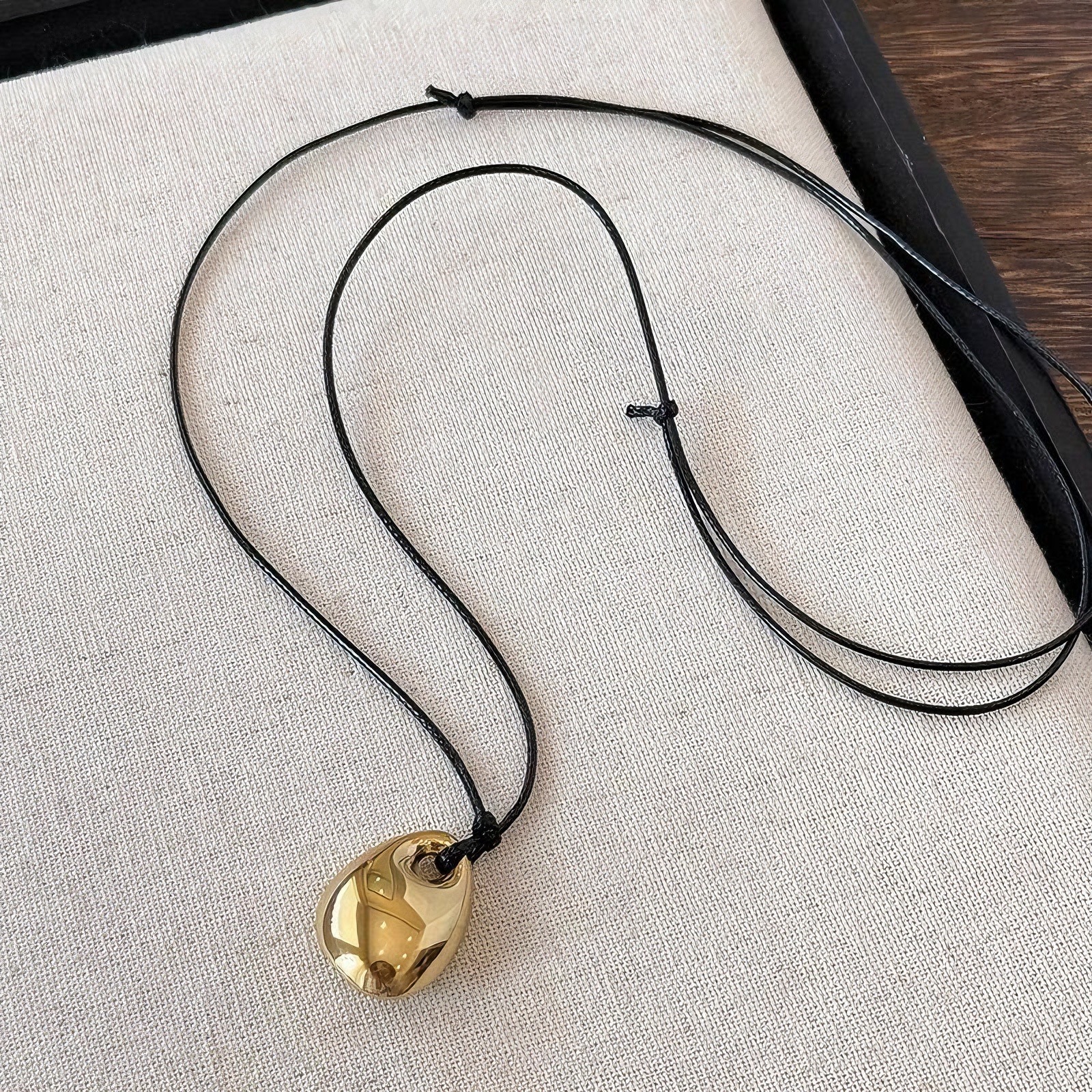 娜扎金色豆豆黑绳项链女夏季长款挂脖配饰极简吊坠挂件毛衣链