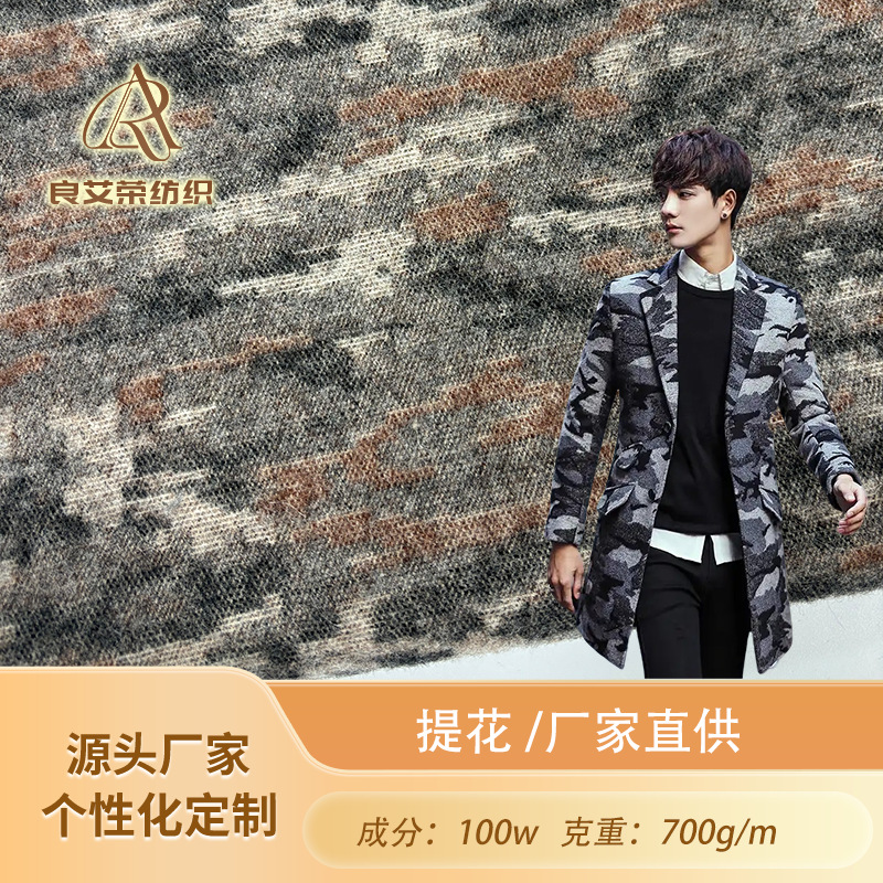 アメリカンカシミヤウール迷彩ウール生地メーカー直送秋冬防縮高級ジャカード生地