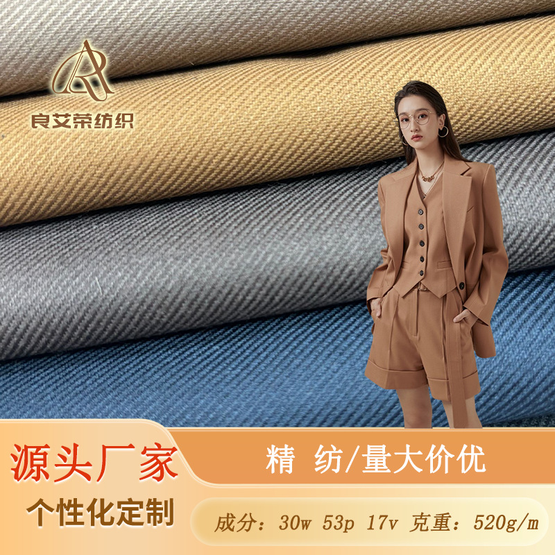 ウールポリエステルビスコース成分高級生地レディーススーツパンツジャケット生地ドーパミン無地スーツ梳毛在庫あり