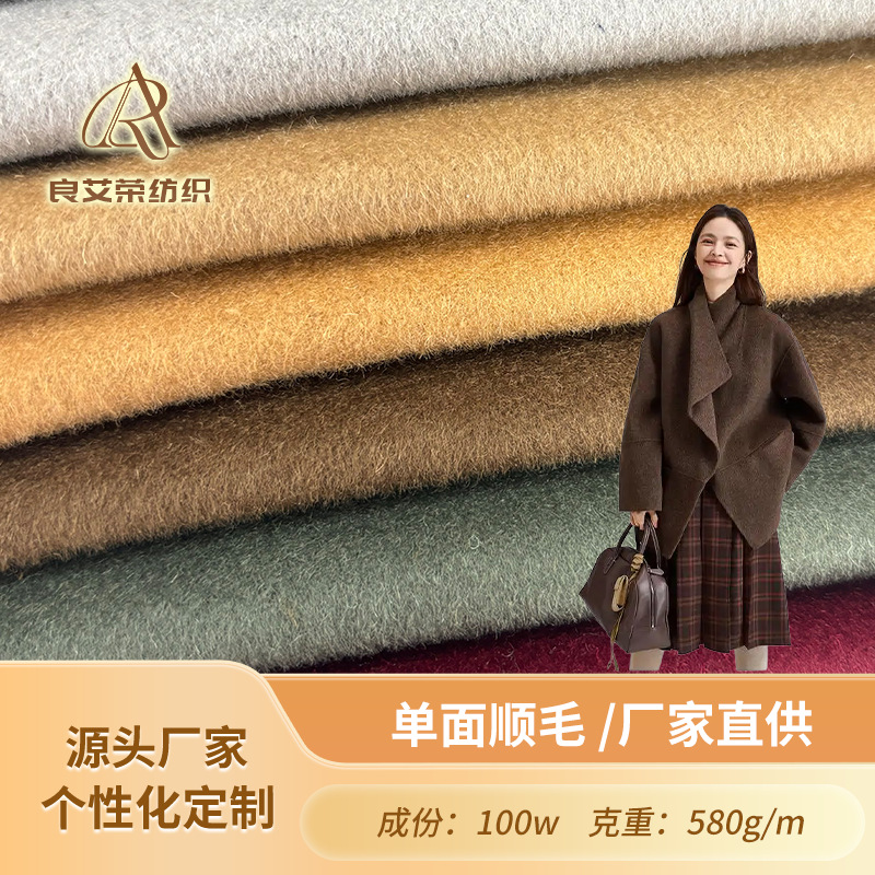 100羊毛单面顺毛简约经典百搭 大衣毛料厂家直供现货面料