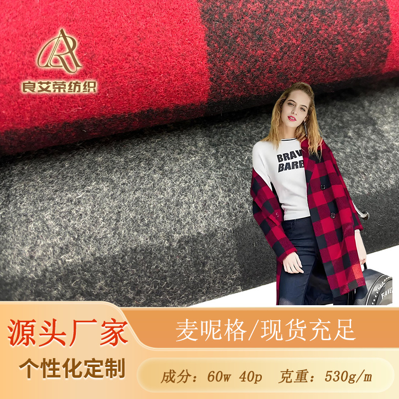 60ウールウール両面異色ベルベットスタイル九方格子生地秋冬ソフトコート生地
