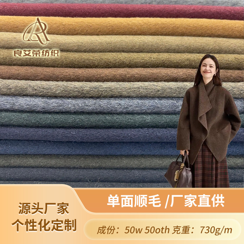 批发50羊毛10天丝单面顺毛面料 秋冬大衣呢羊毛混纺面料