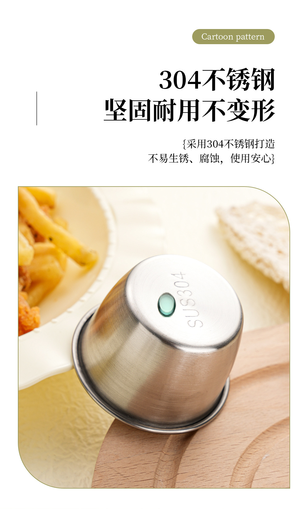 304不锈钢酱料杯70ml激光小熊零食杯蘸料盒带盖酱汁杯番茄酱容器