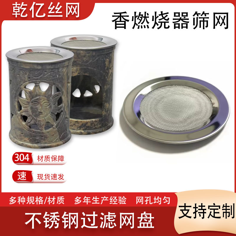 不锈钢香炉灰筛网盘 金属香屏滤网兜 适配熏香器圆形包边过滤网片