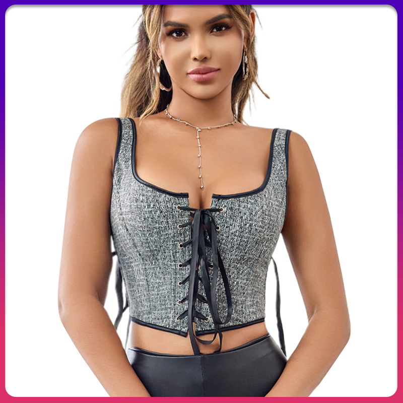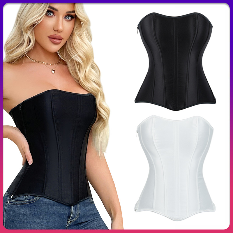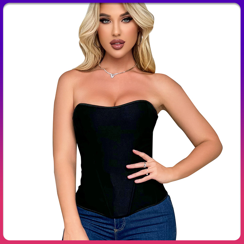 前绑带鱼骨胸衣双肩带修身收腰托胸女士束胸塑身上衣temu跨境货源