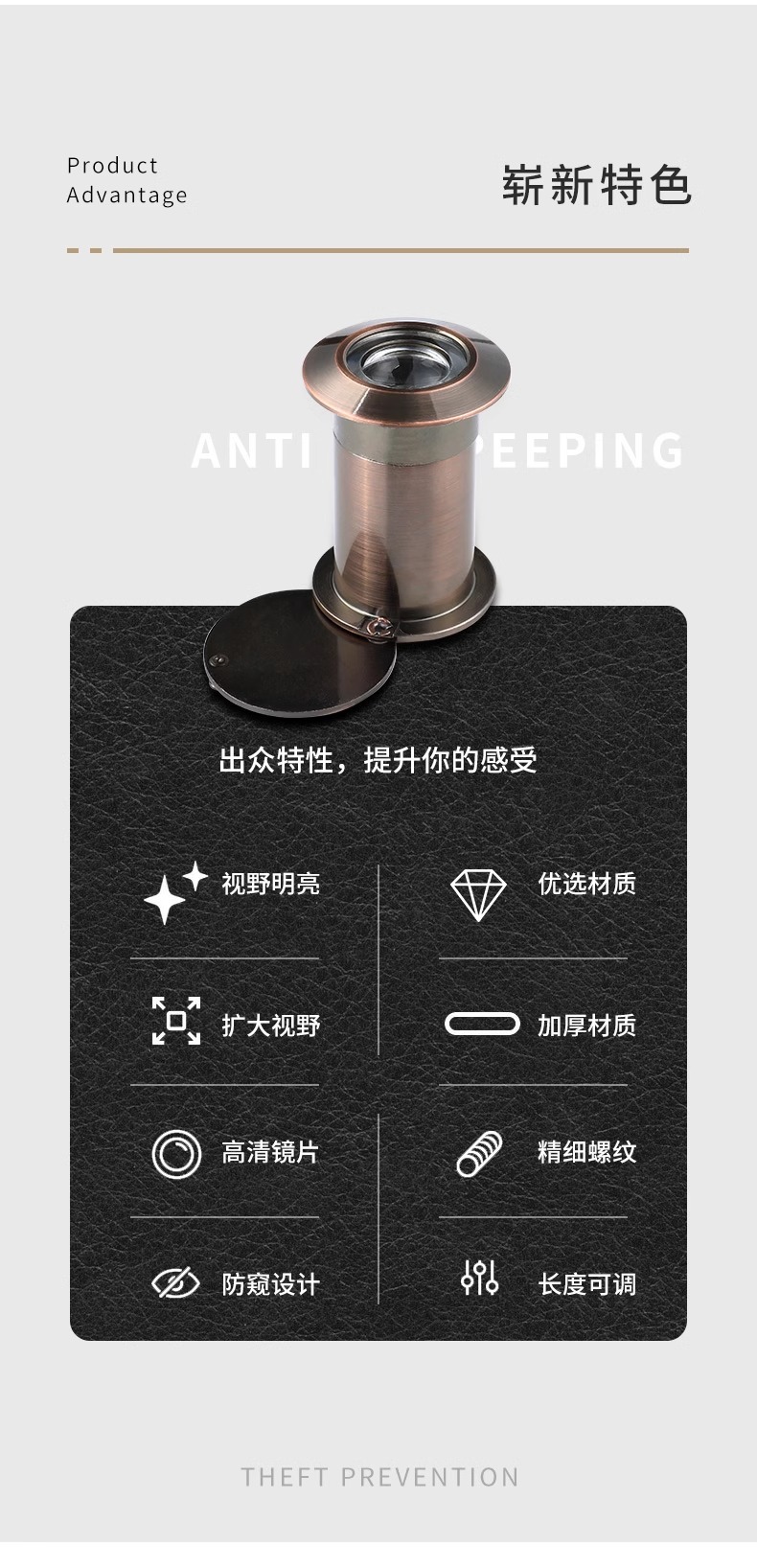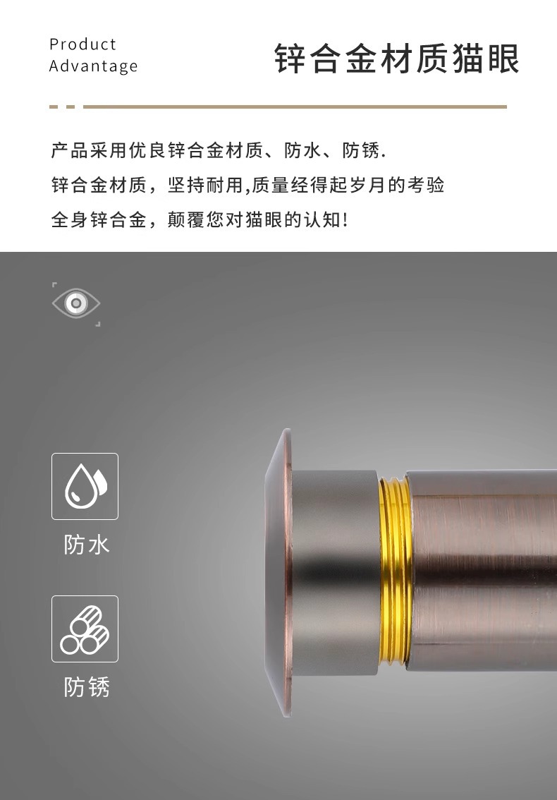 ホテルやゲストハウスで使用できる、外観が羊の目のような調子のドア覗き穴。覗き見防止、盗難防止、調整可能なドア覗き穴です。