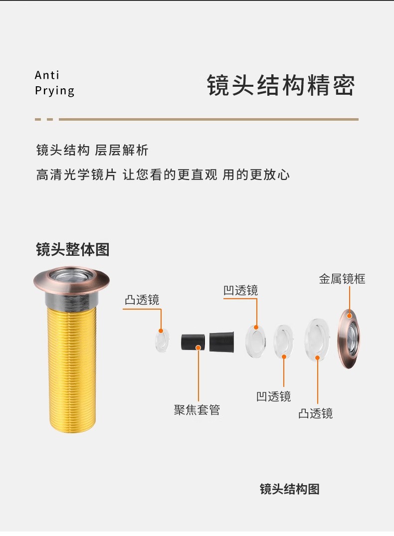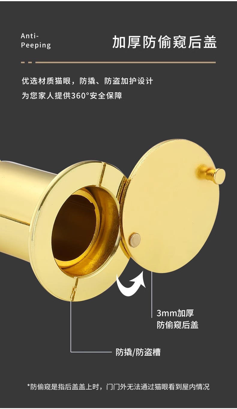 锌合金猫眼门镜高清玻璃镜片视角酒店入户门防盗门防撬防偷窥羊眼