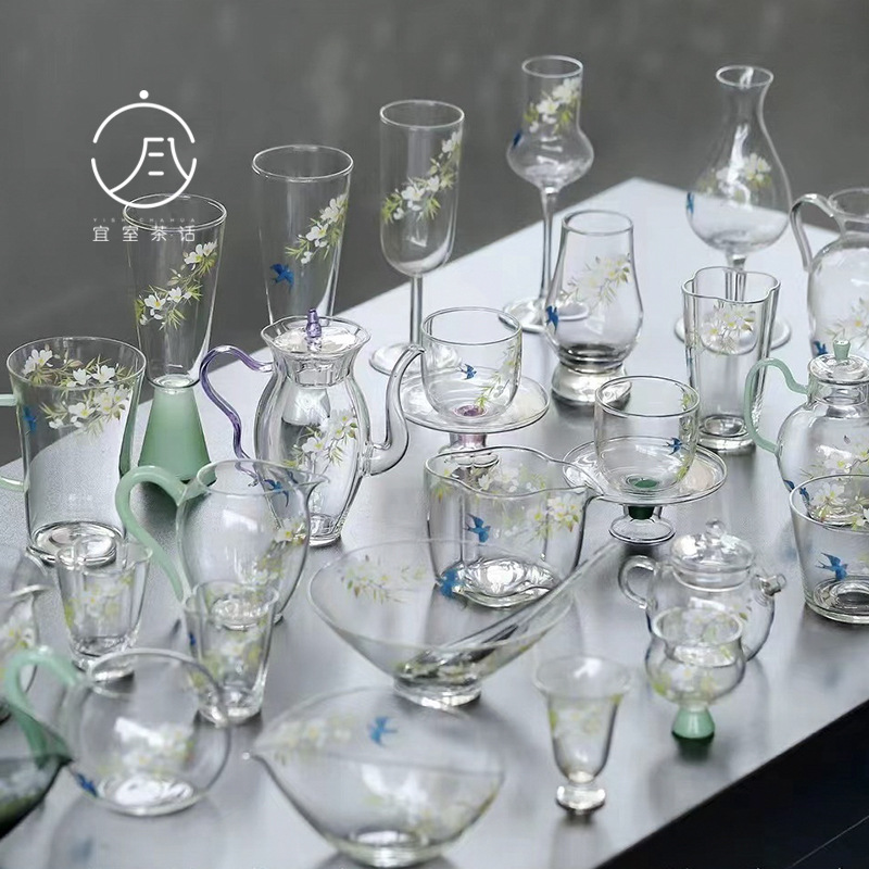 宜室茶話2024春帰ガラスシリーズ合集手貼り絵蓋ティーポット茶杯公道杯部品
