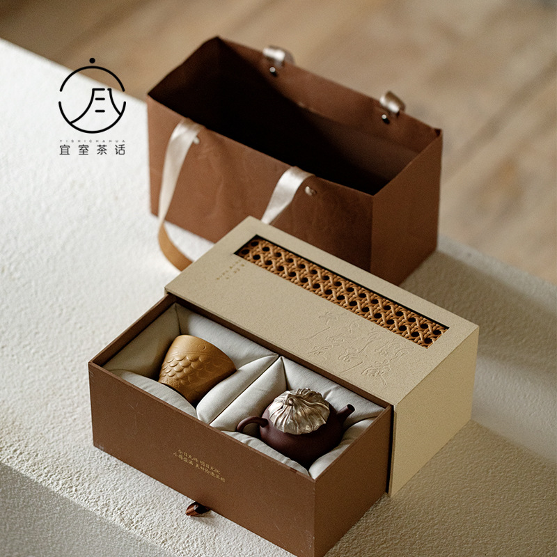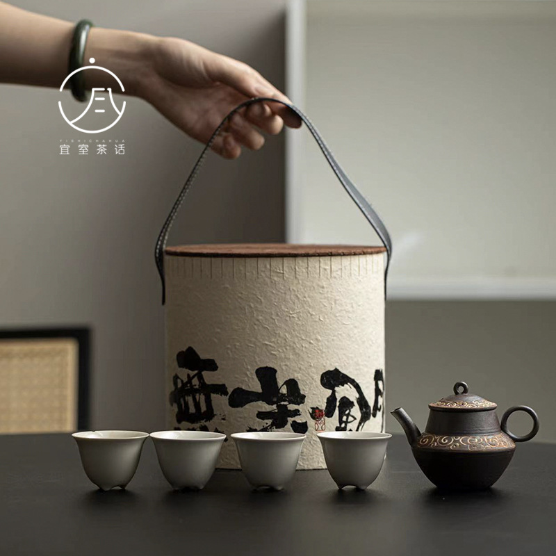 宜室のお茶の話の古い岩の泥のティーポットの4杯の家庭用のお土産の茶器のセットの高級なギフトボックスの工夫の茶器