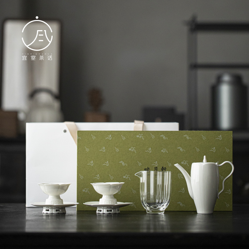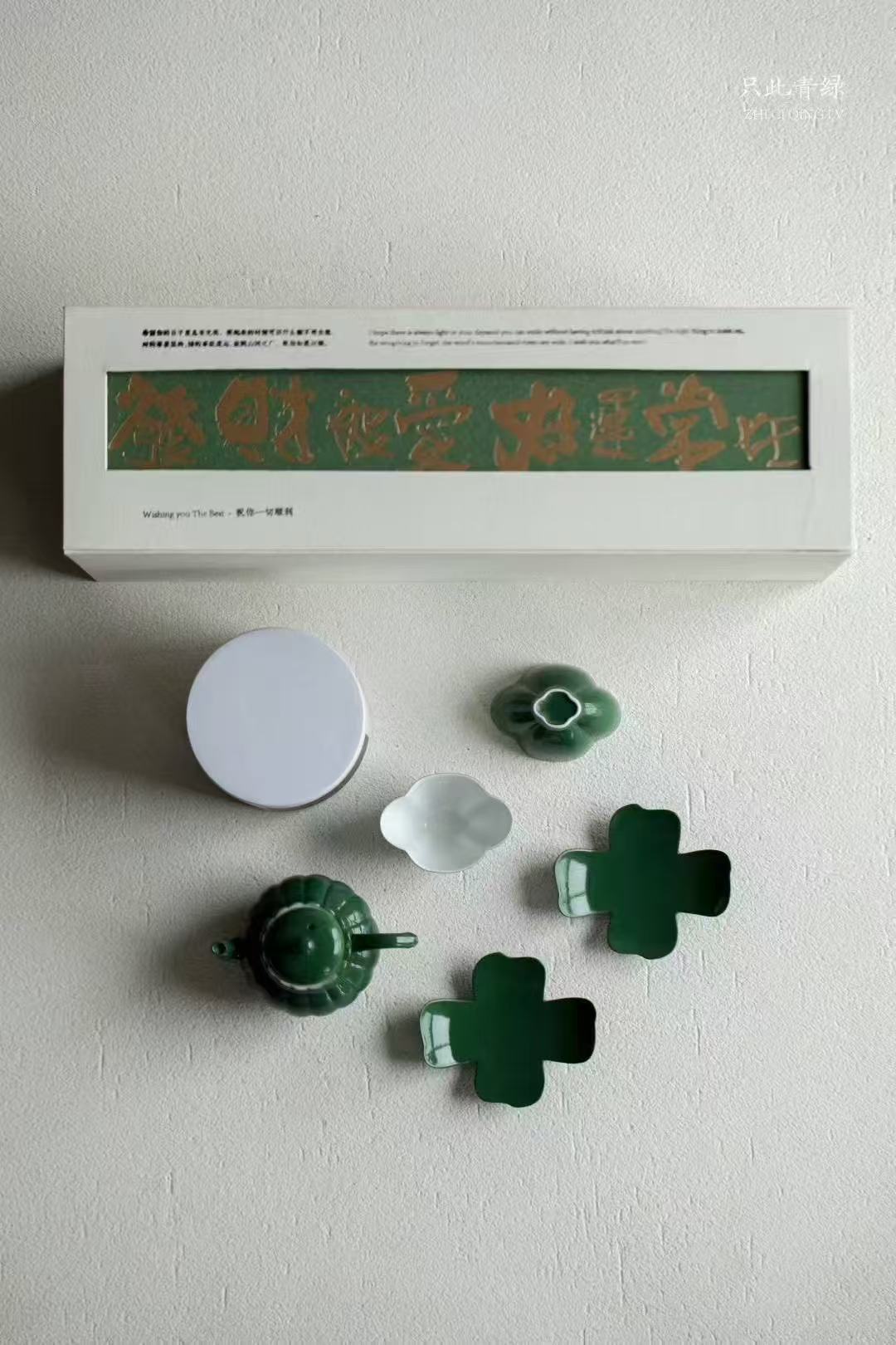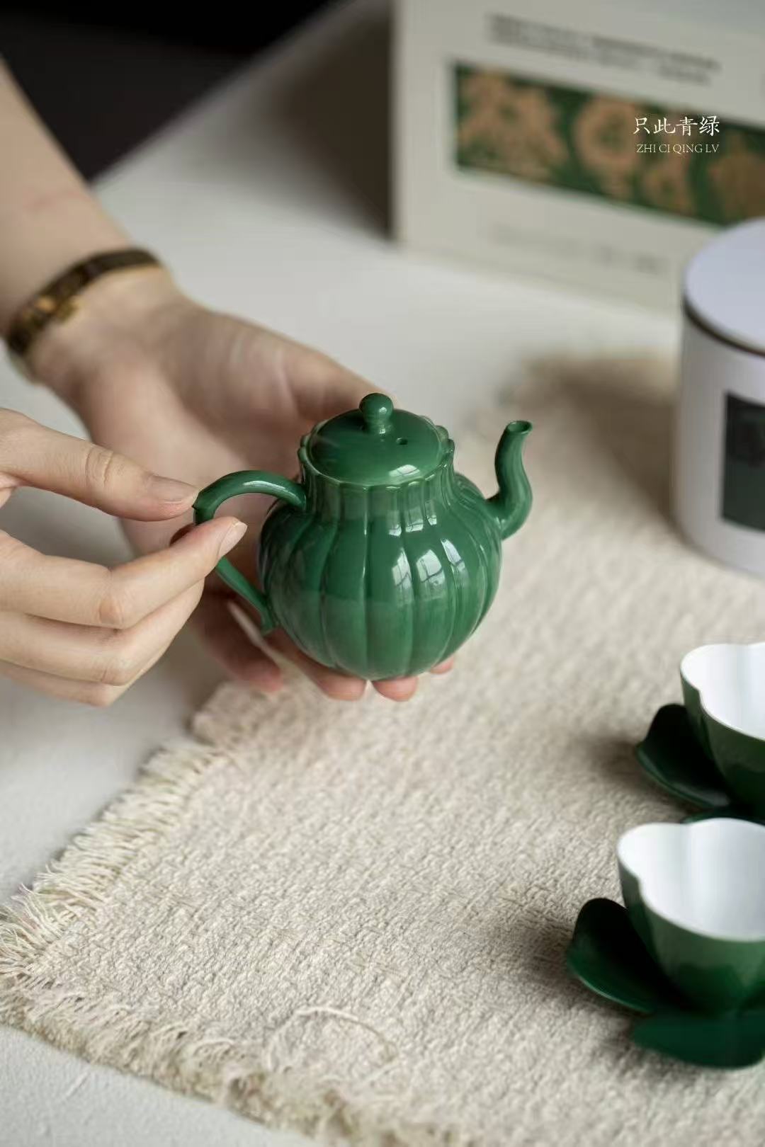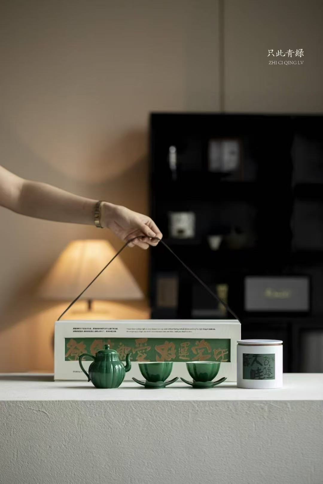 宜室茶话传统中国色绿色茶具礼盒套装一壶二杯茶壶送长辈生日礼物