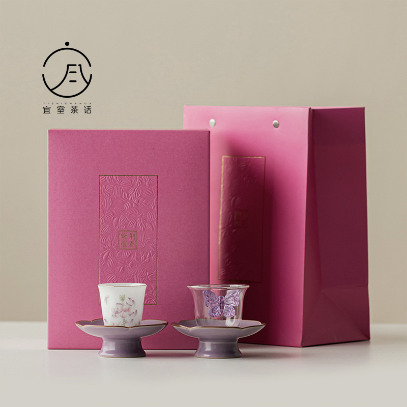 Yishi Tea Talk バンブー ブロッサム ティー カップ ペア ティー セット 中国風ペア カップ ギフトボックス お土産 教師の日ギフト
