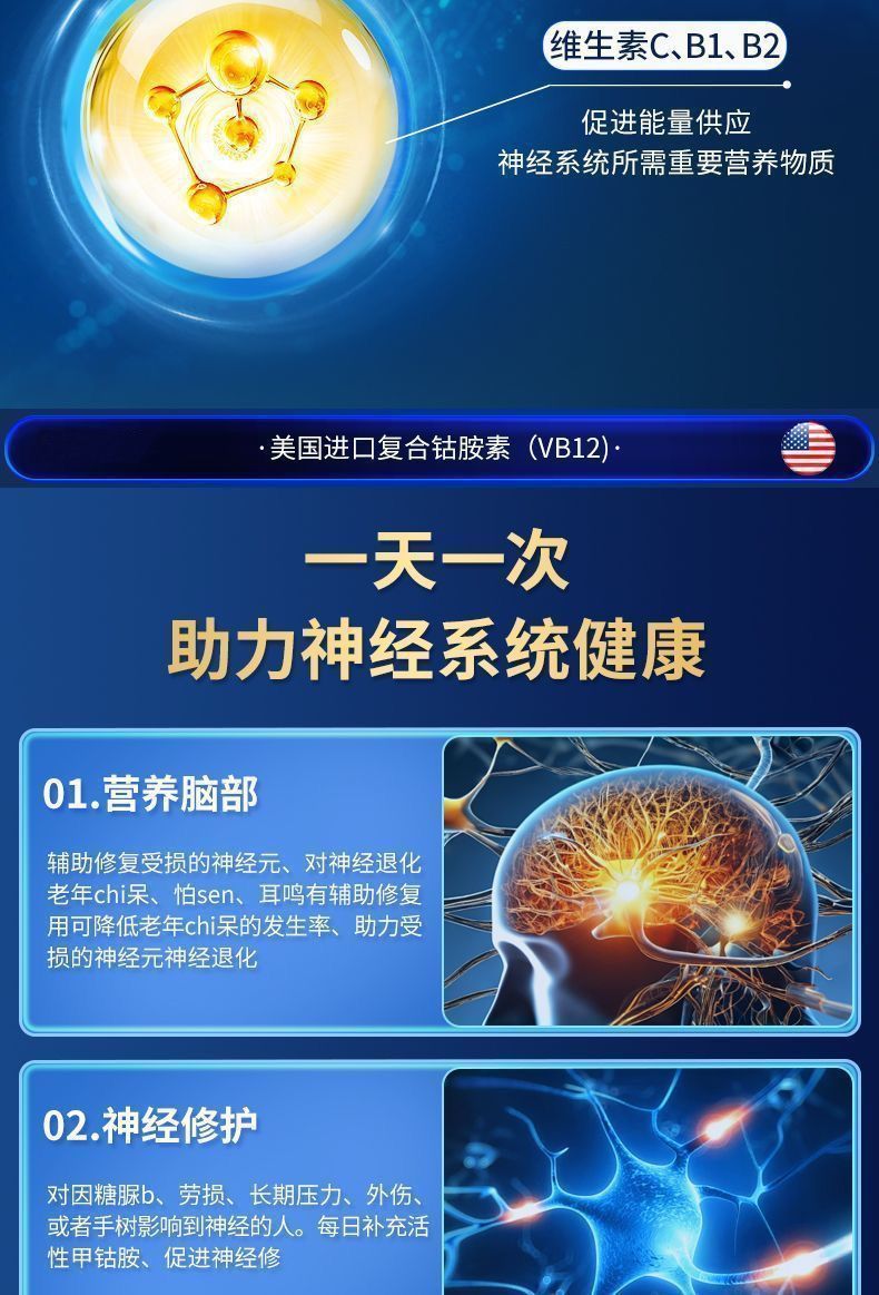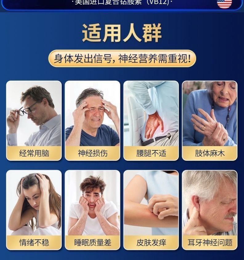 美国进口维生素b12甲钻胺片营养神经损伤维生素b族叶酸正品