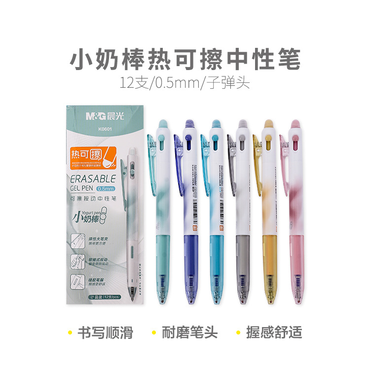 晨光K0601小奶棒热可擦中性笔晶蓝0.5mm可擦笔黑色摩易擦按动笔