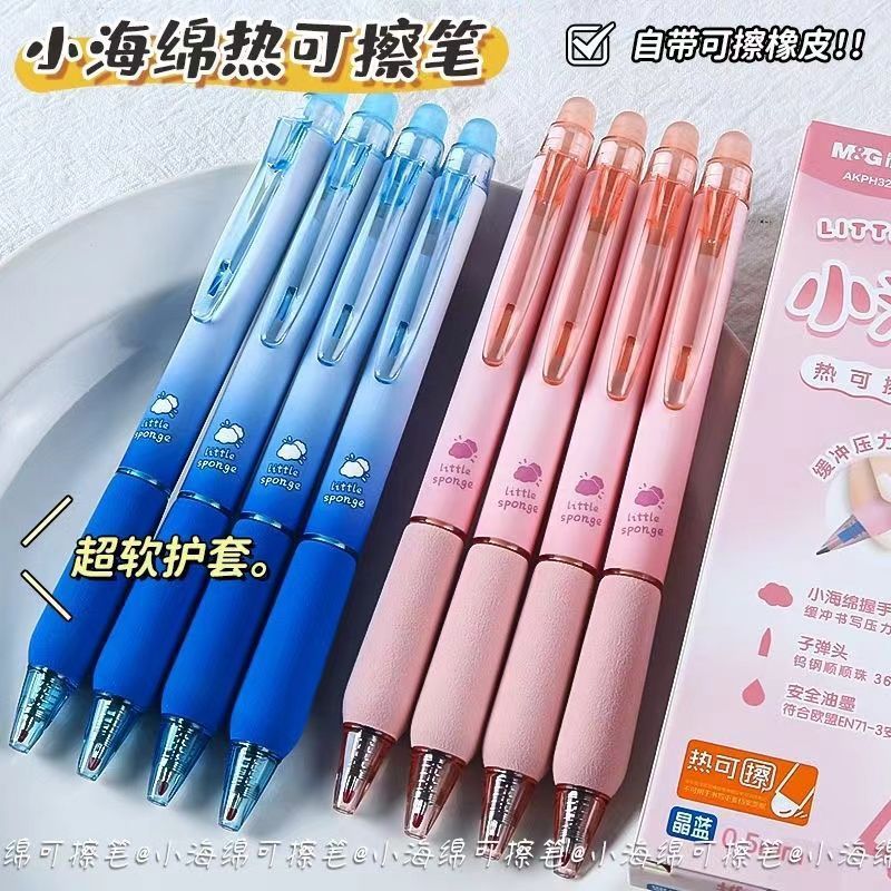 晨光小海绵三年级专用小学生按动可擦中性笔男孩高颜值女孩按动笔