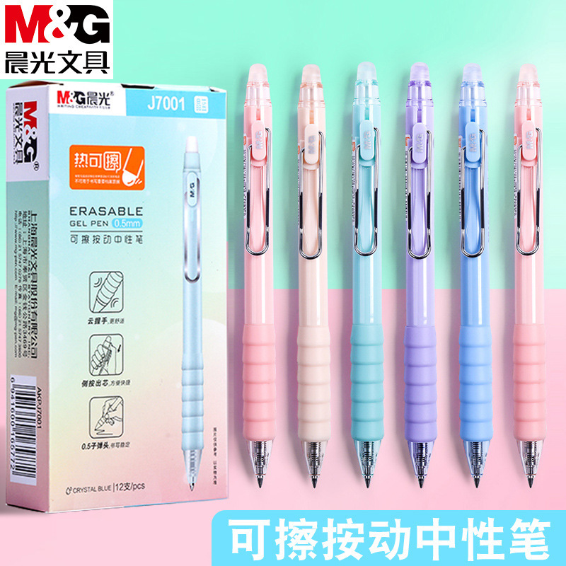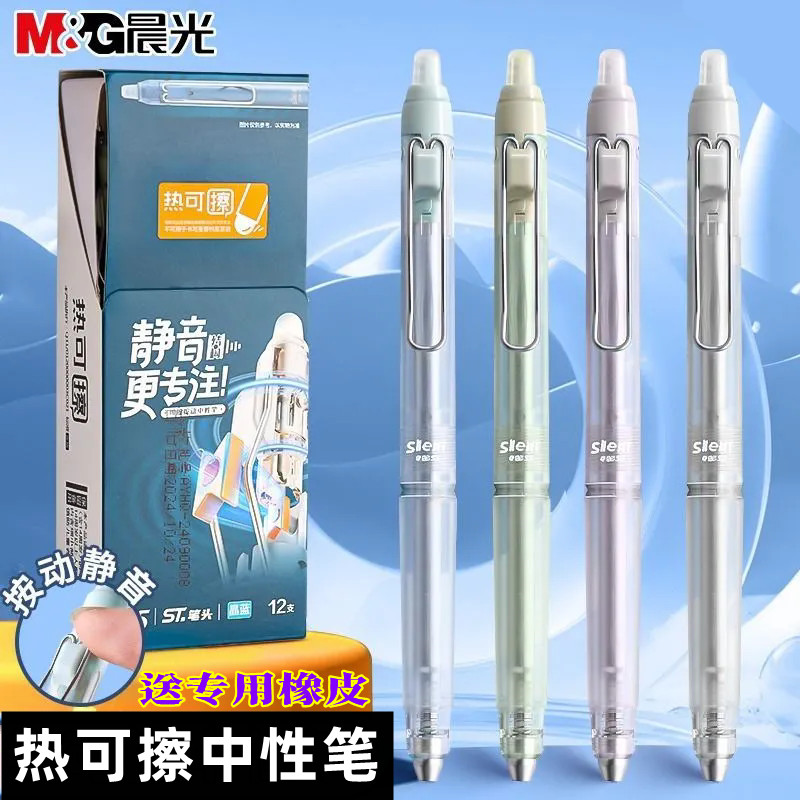 晨光K6901静音可擦中性笔按动热可擦水笔芯小学生用st头黑色晶蓝