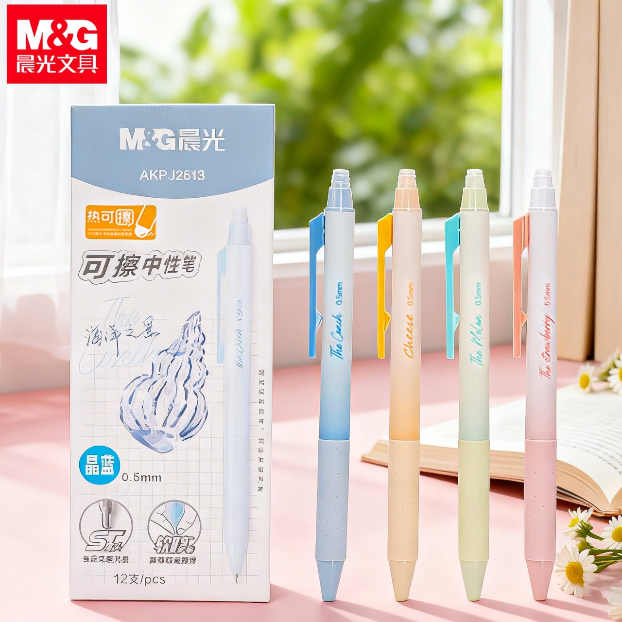 晨光按动热可擦中性笔云握手可擦笔0.5mm子弹头学生晶蓝水笔
