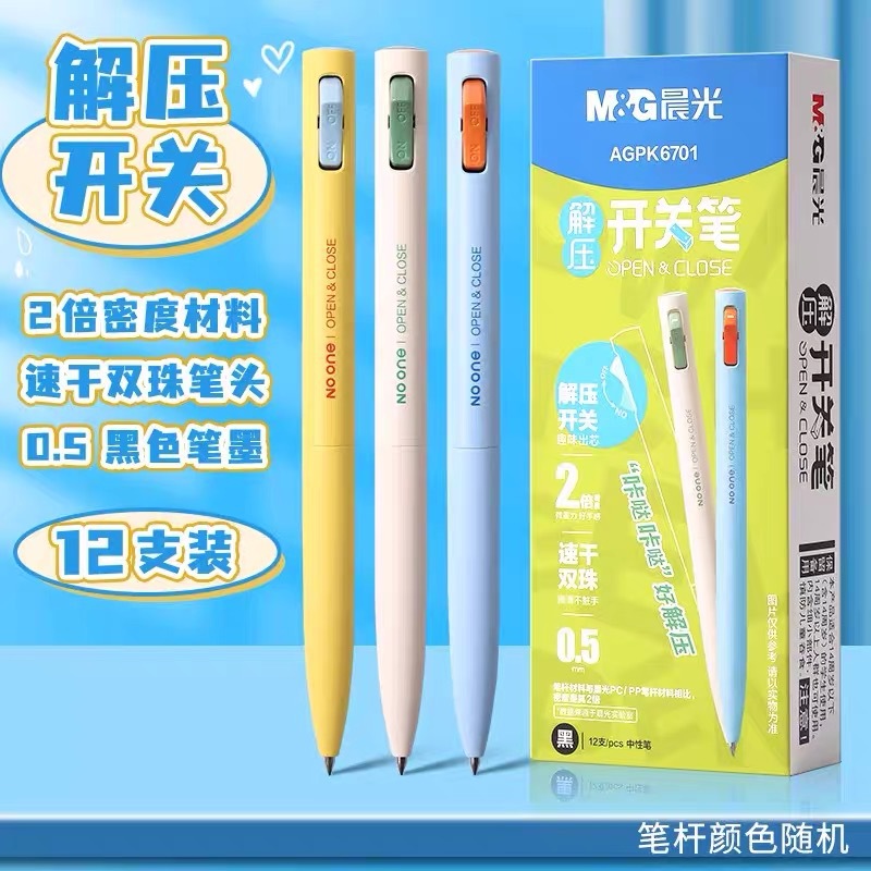 晨光K6701解压开关笔双珠子弹头黑色0.5mm低重心高颜值学生中性笔