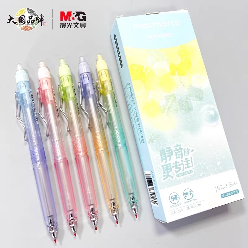 晨光K6931 MAS气泡果果按动中性笔静音ST尖速干黑0.5mm学生刷题笔