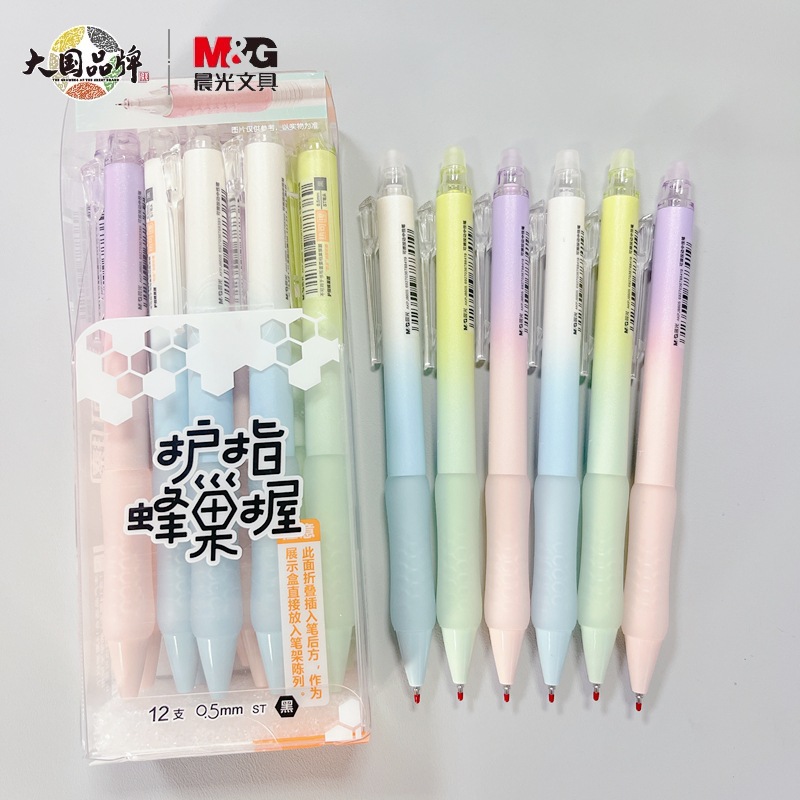 晨光AKPJ8605护指蜂巢软胶笔握热可擦中性笔0.5mm按动晶蓝黑色
