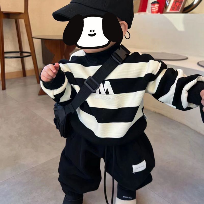 幼儿园男童套装秋冬季2025新款儿童洋气卫衣灯笼裤加绒两件套