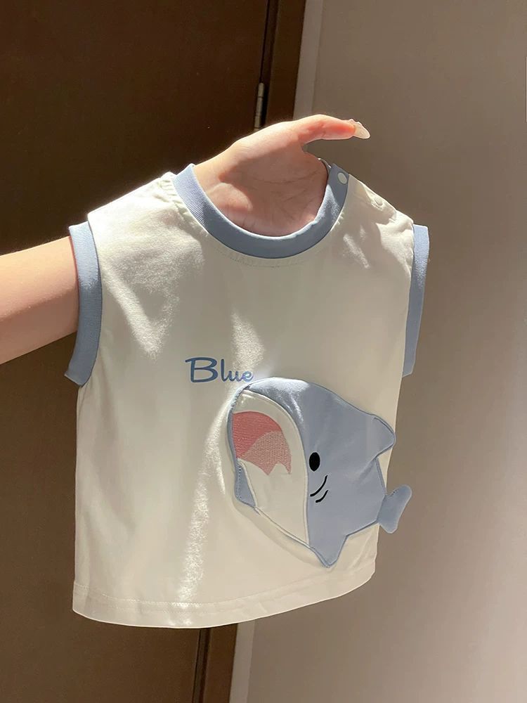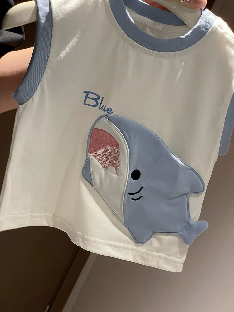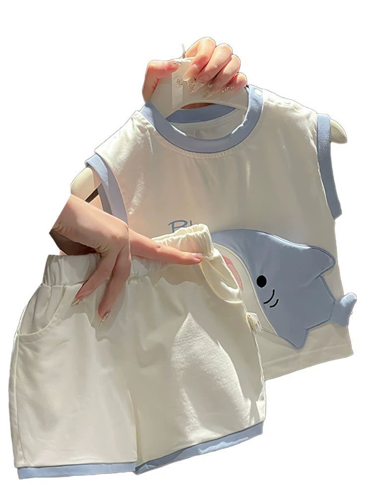 幼児夏服ツーピースセット新しい漫画スタイルノースリーブスーツ薄い男の子ベビータイプA Tシャツパンツ