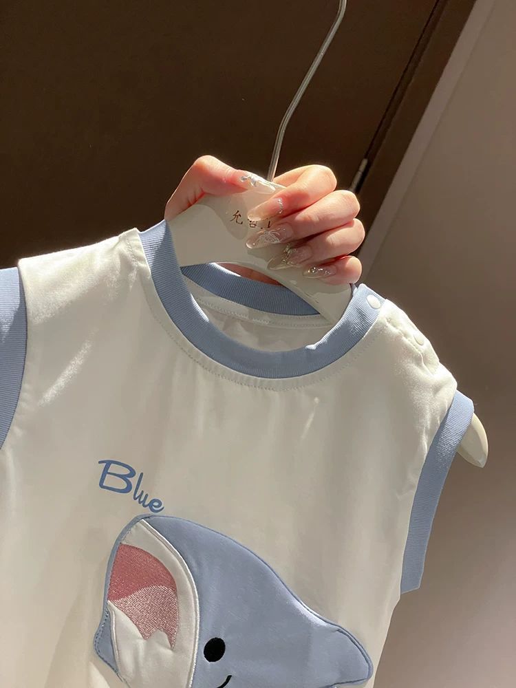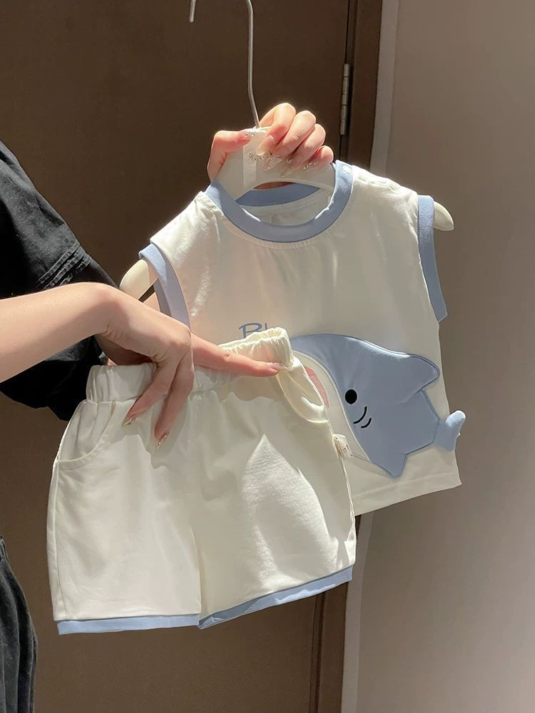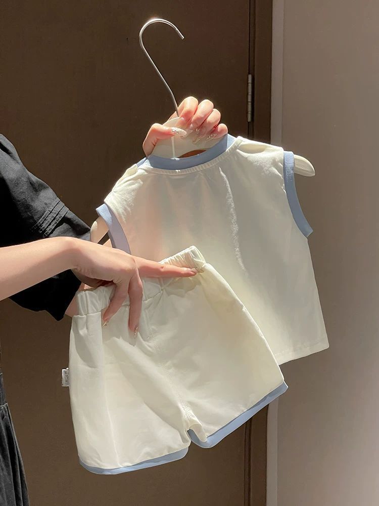韓国風ファッショナブルな男の子のベストスーツ夏 2025 新しいハンサムな子供の夏服ベビーノースリーブ服