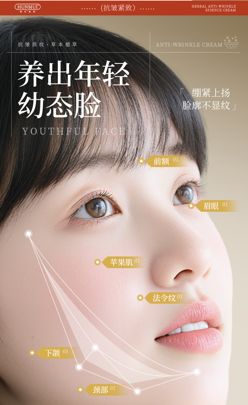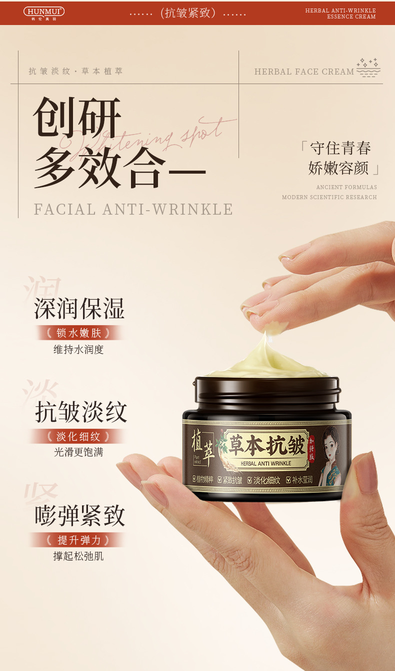 韩伦美羽-草本抗皱精华霜淡化提亮肌肤暗沉补水保湿抗皱面霜批发