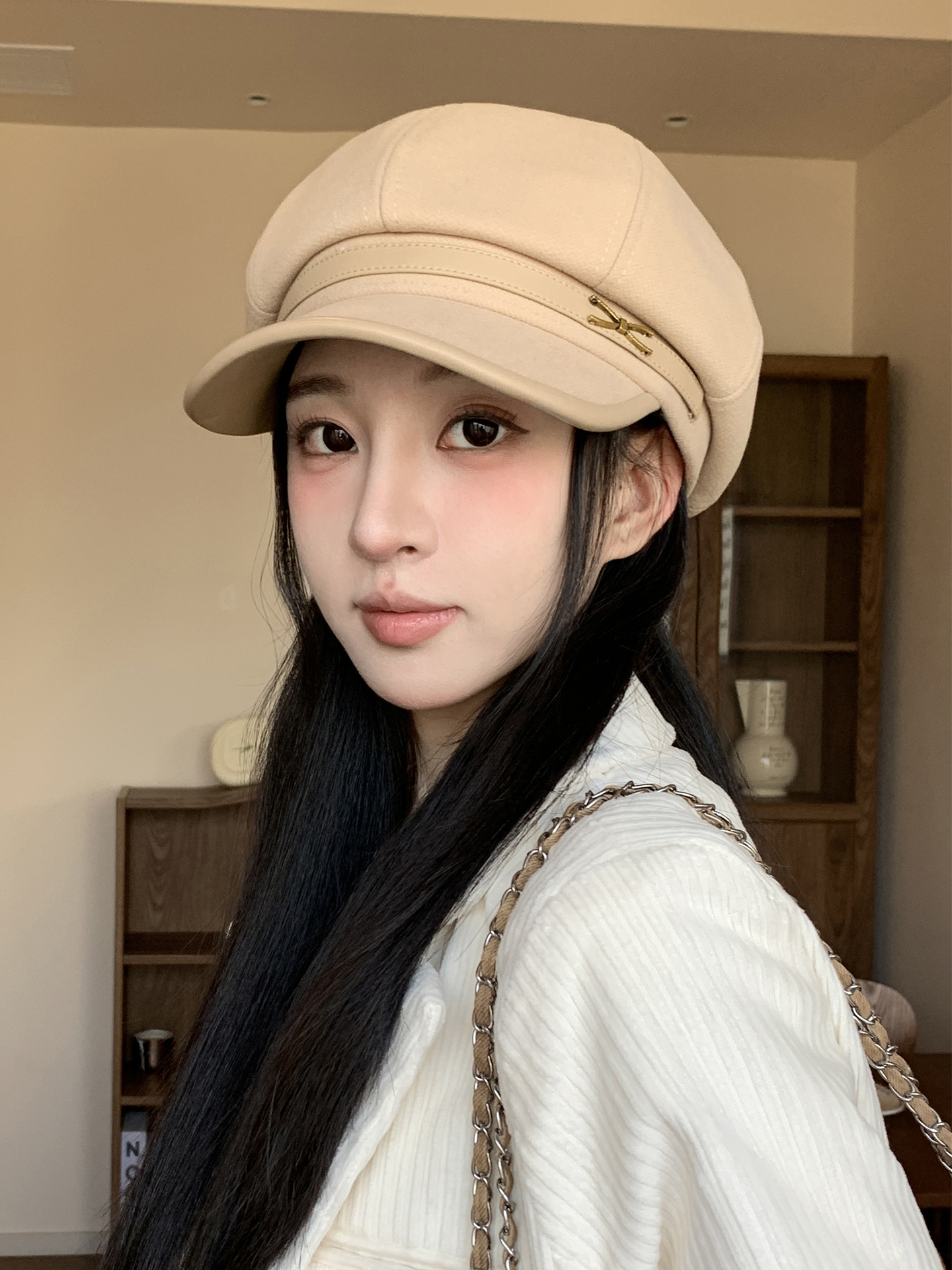 显脸小英伦风帽子女秋冬保暖贝雷帽韩系百搭八角帽休闲复古报童帽