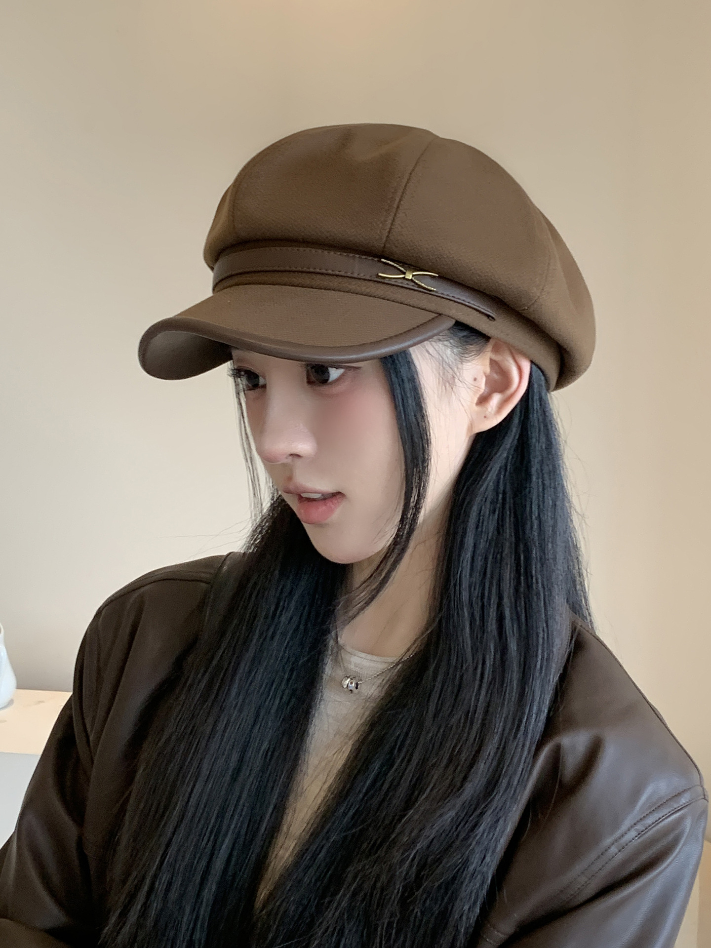 英伦风复古包边皮带扣八角帽子女秋冬新款文艺百搭贝雷帽画家帽潮
