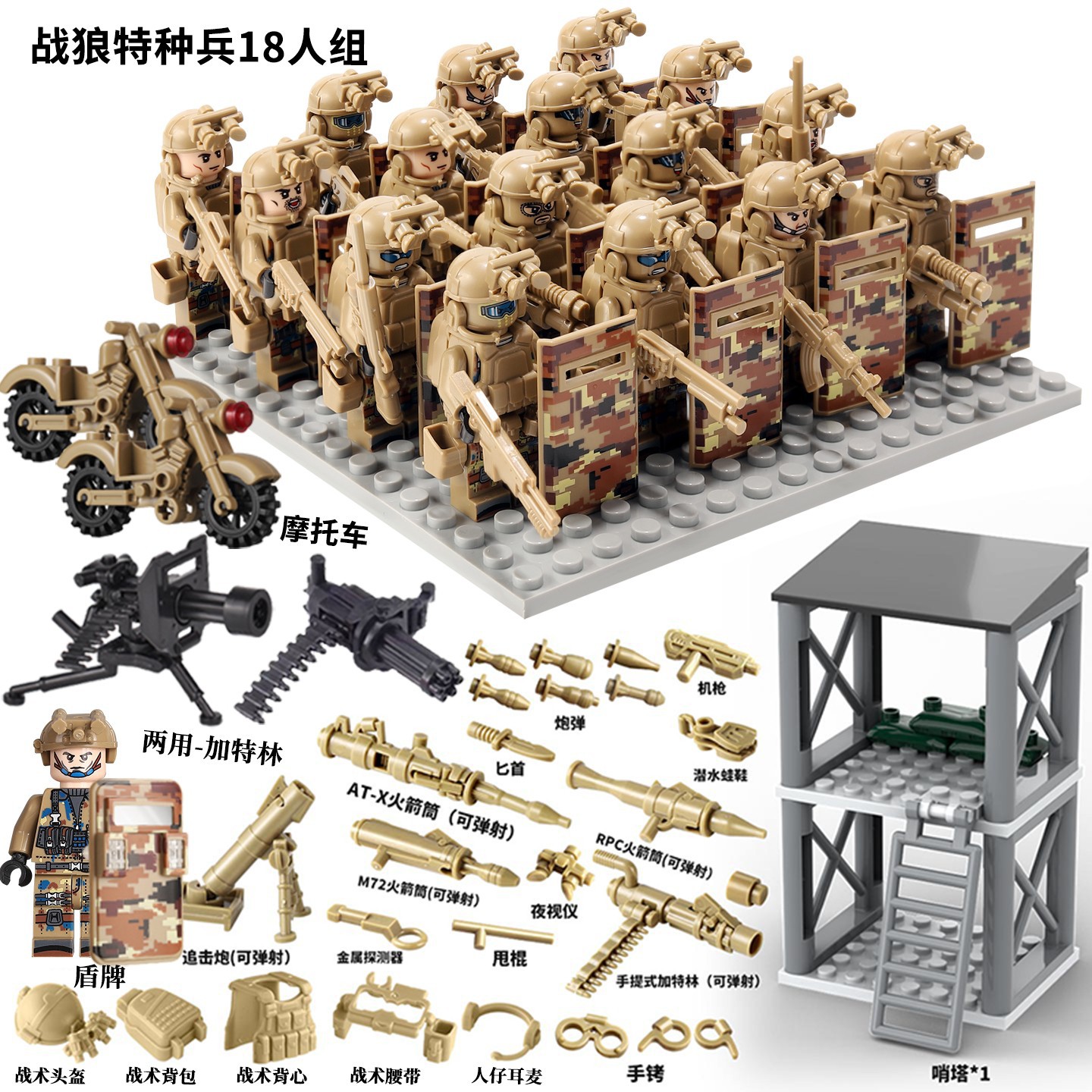 适用乐高军事人仔特种兵基地哨塔警察小人偶武器男孩拼装积木玩具