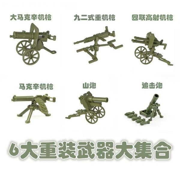 国境を越えて人気のある第三者の軍事武器大砲重機関銃第二次世界大戦人の子積み木重武器模型玩具