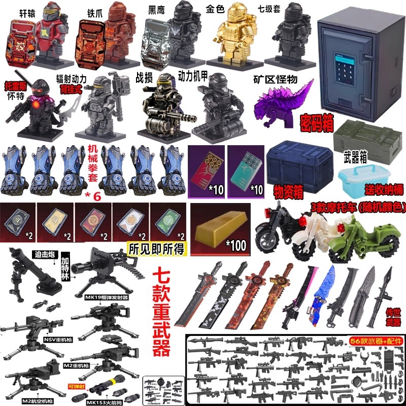 兼容乐高和平精英七级甲托雷斯怀特密码箱卡大刀武器积木人仔玩具