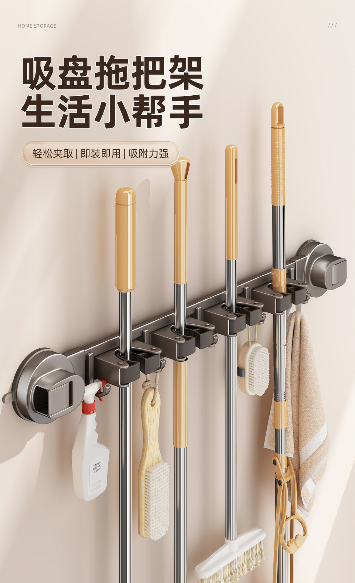吸盘拖把壁挂夹卫生间免打孔拖把夹挂扫把拖布挂钩固定架收纳神器