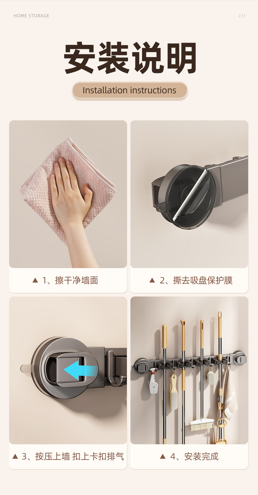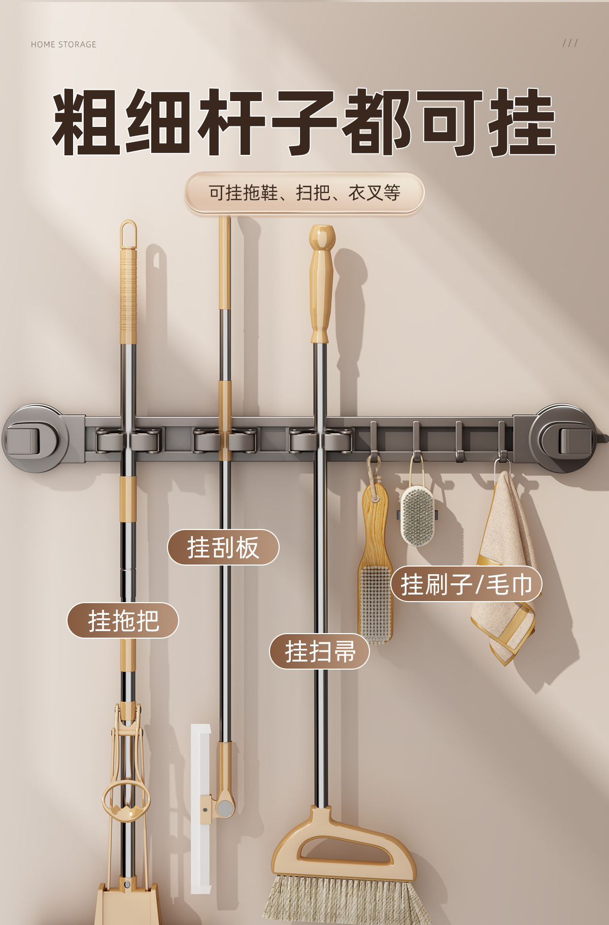 吸盘拖把壁挂夹免打孔挂扫把架子拖布挂钩家用卫生间墙上收纳神器