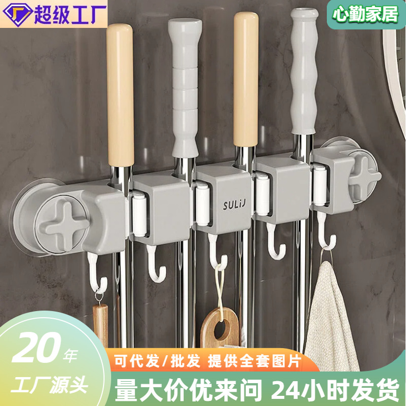 代发免打孔吸盘拖把夹架浴室固定挂钩神器壁挂式扫把置物收纳挂架