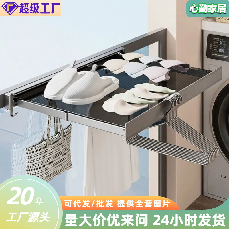 バルコニー折りたたみ式物干しラック、窓枠、壁掛け伸縮式隠し物干しネット、穴あけ不要、室内窓物干しネット