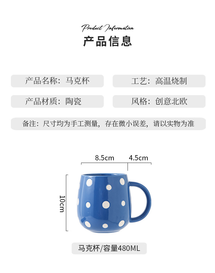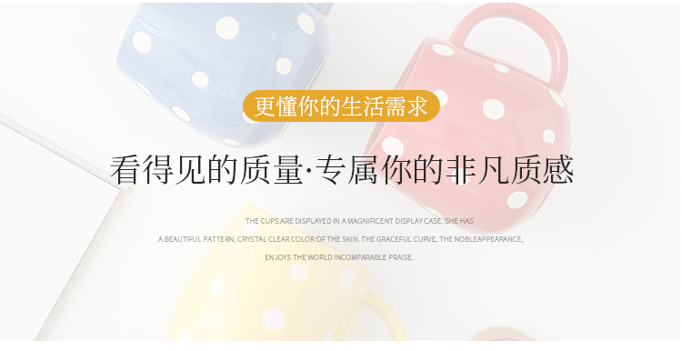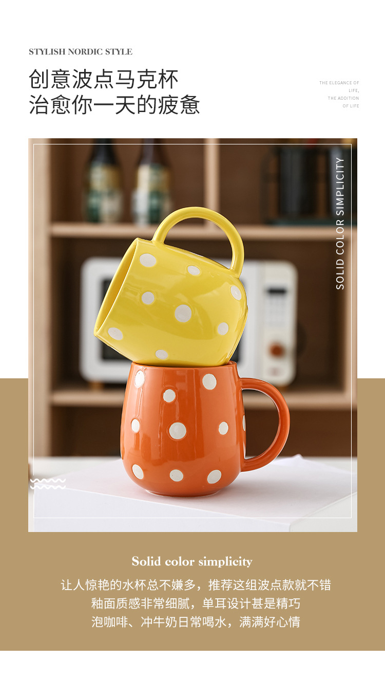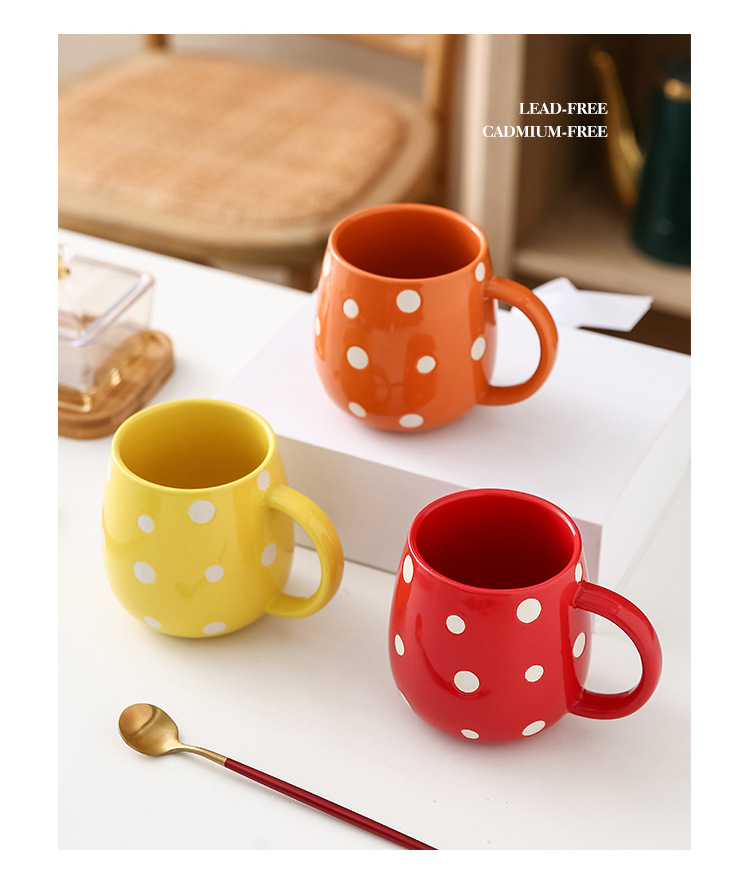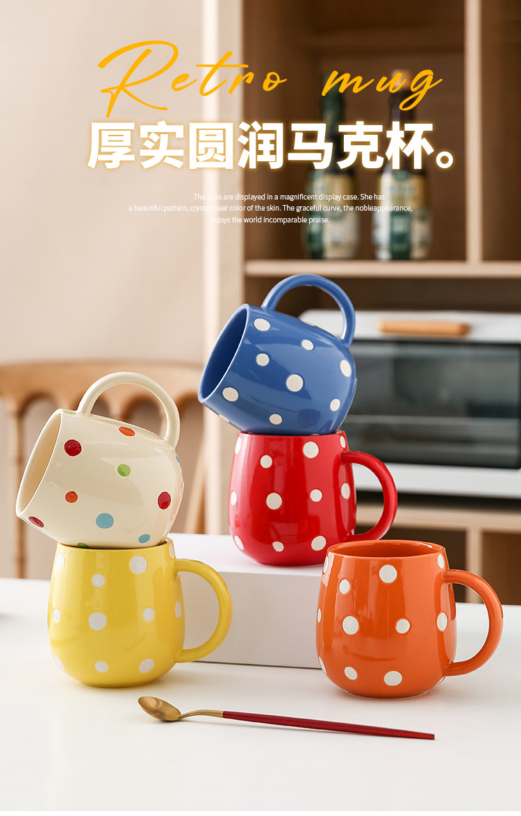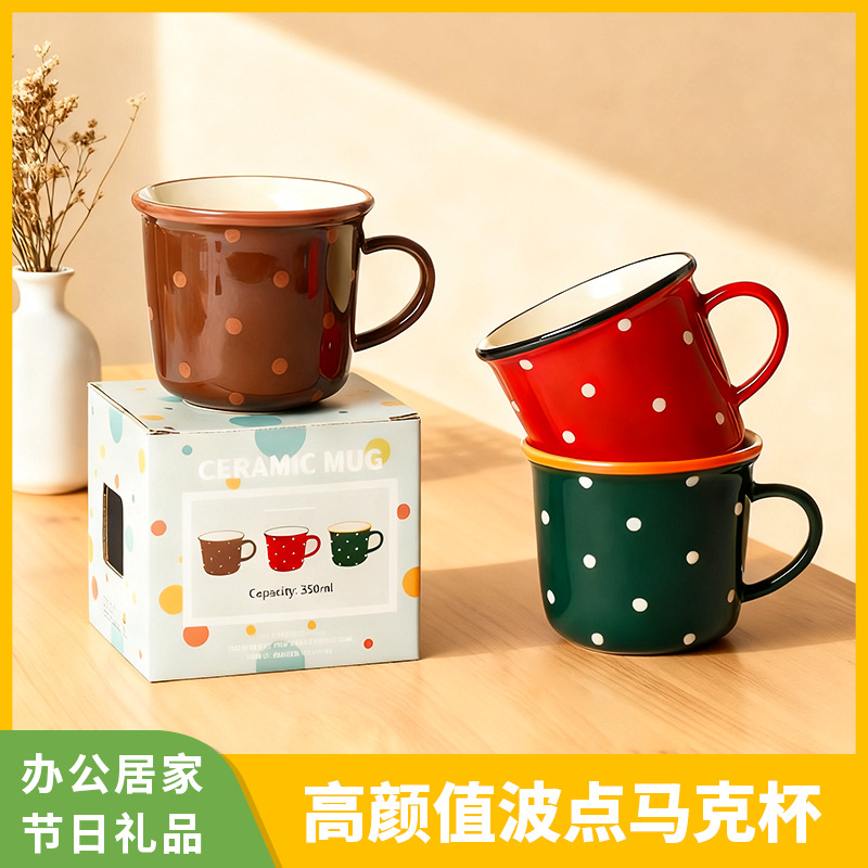 高颜值波点马克杯节日礼品印logo陶瓷水杯居家早餐喝水用办公杯子