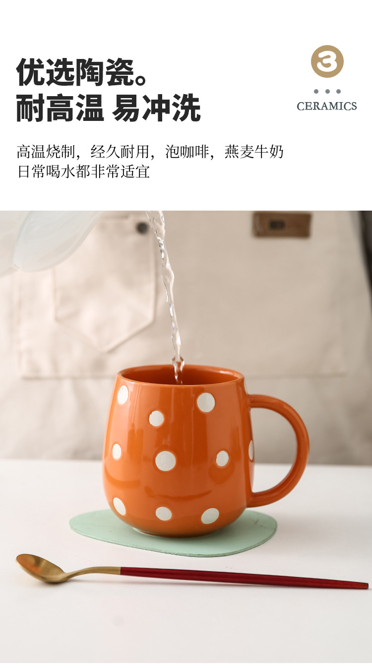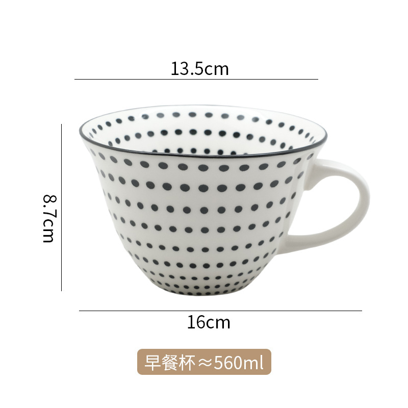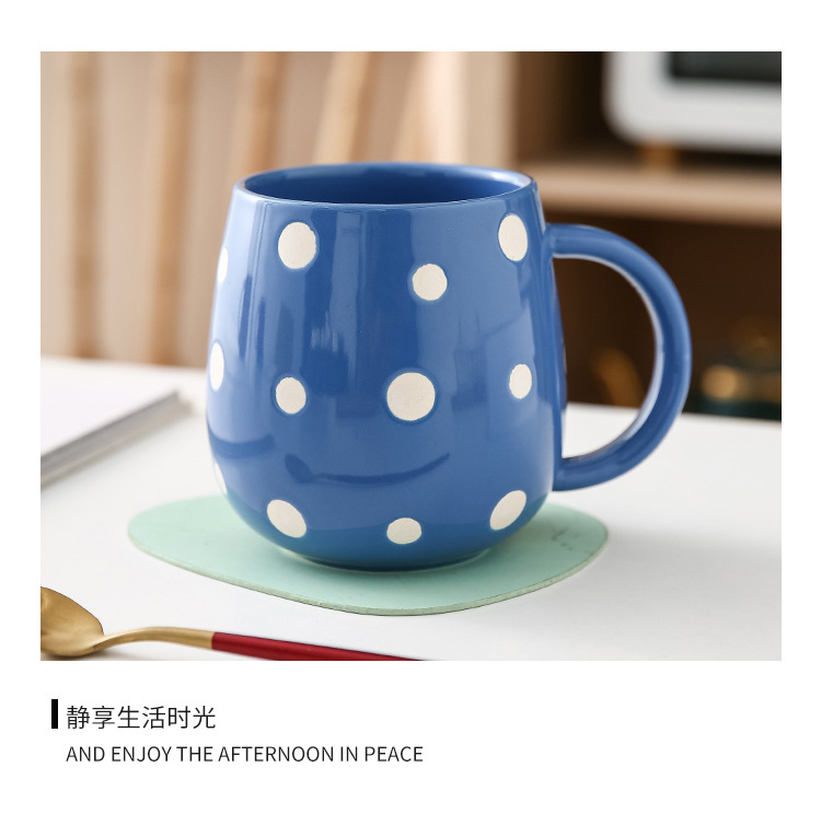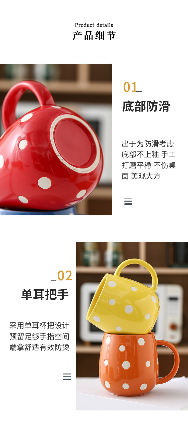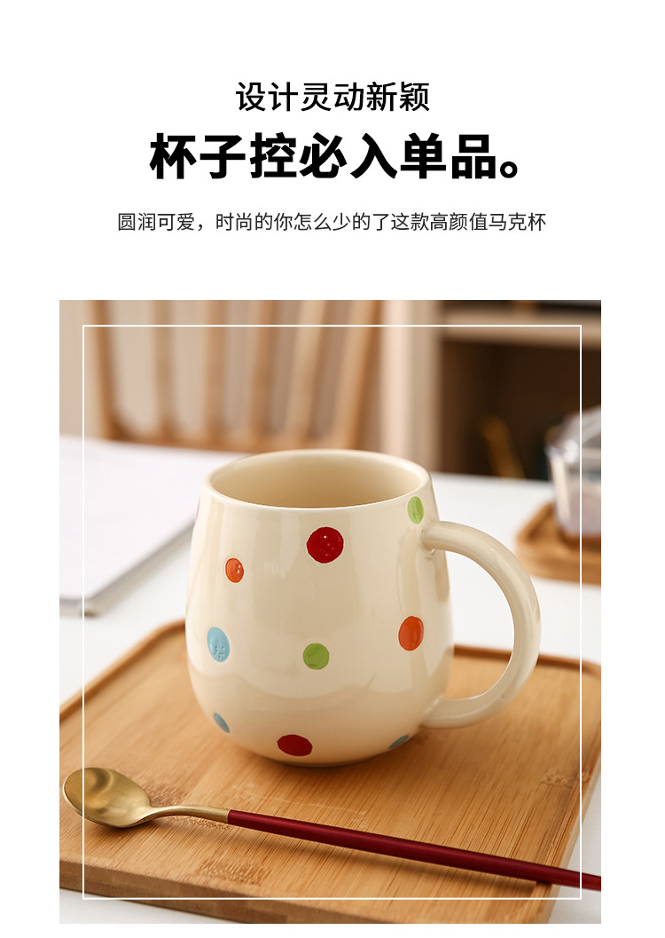 包邮彩绘波点风陶瓷水杯轻奢高级感办公家用早餐牛奶咖啡马克杯子