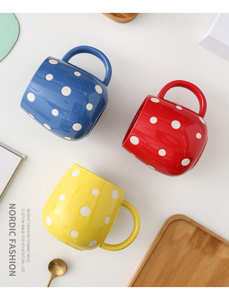 波点コップかわいい陶磁器コップマグカップ創意個性ファッションコップ家庭用牛乳朝食コーヒーカップ