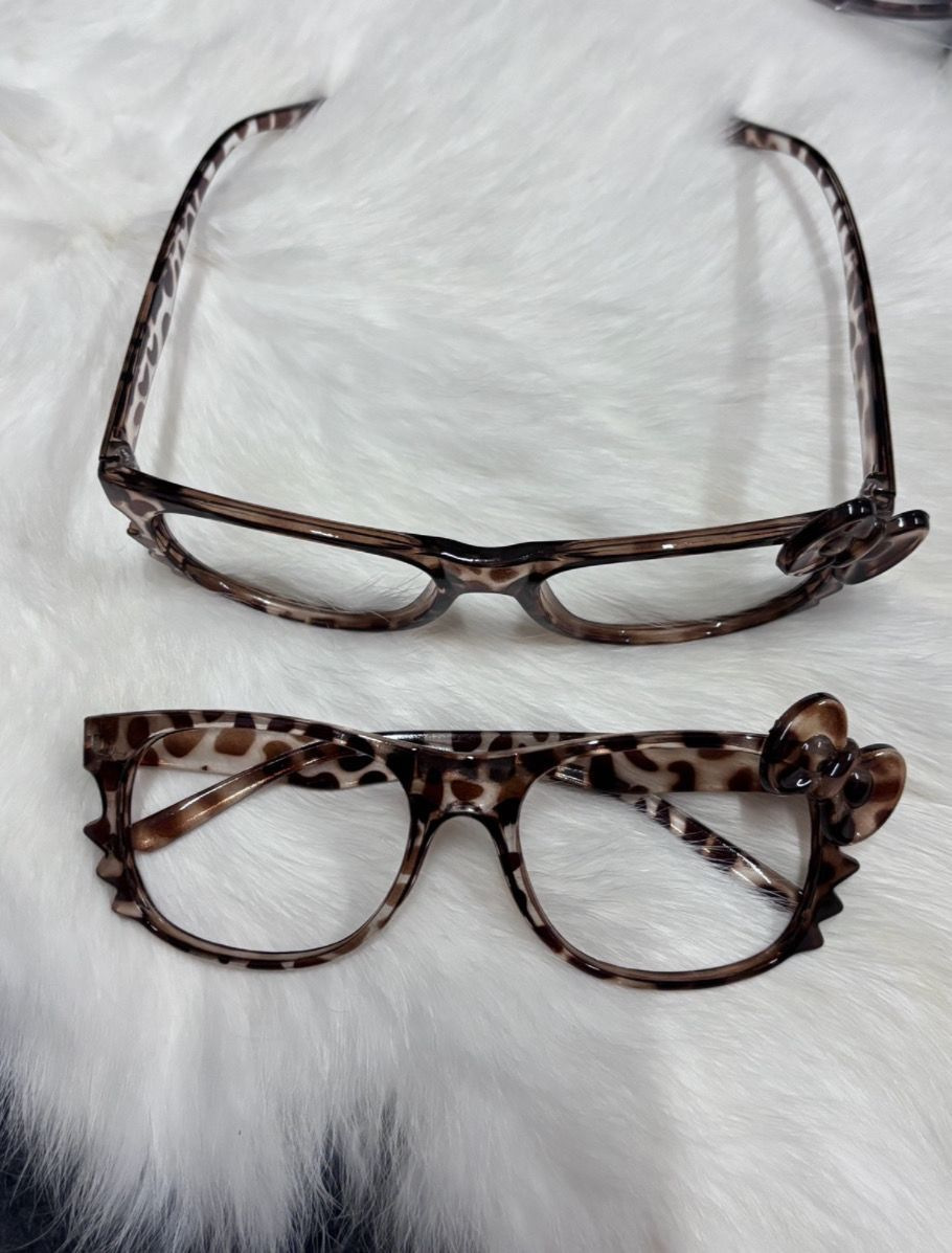 跨境新款女士豹纹复古kitty猫玳瑁色蝴蝶结可爱素颜眼镜拍照装扮