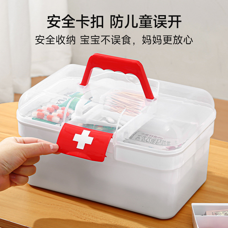 薬箱家庭用薬箱薬品収納箱分格多層携帯医療救急箱透明薬箱