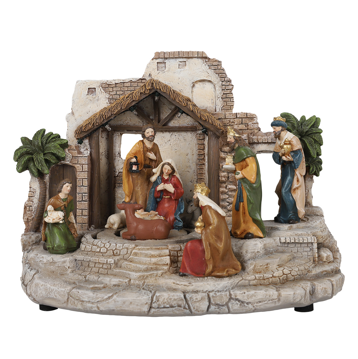 圣诞马槽树脂工艺品摆件 创意家具装饰LED电动音乐小房子工艺批发