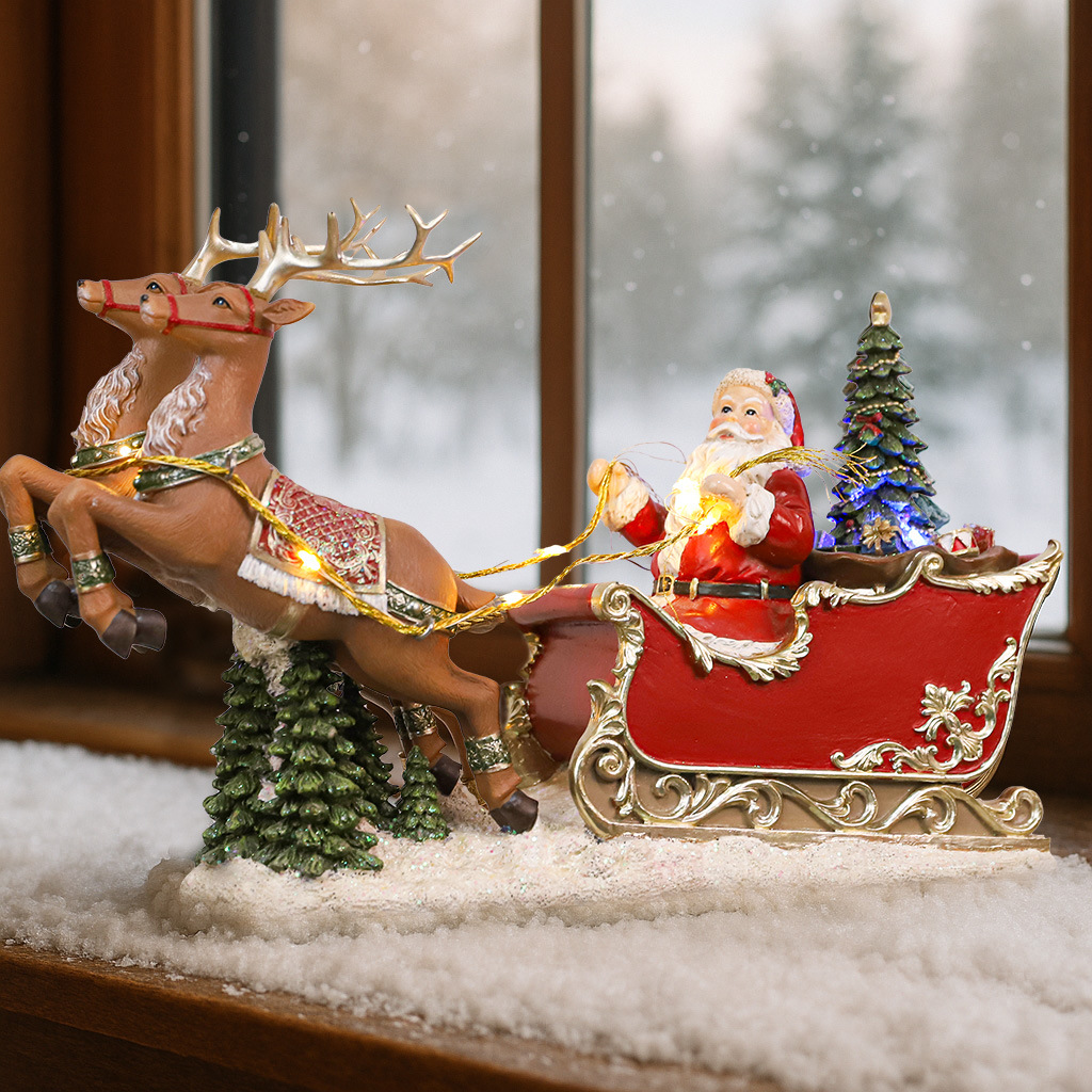 跨境新品创意圣诞老人拉着麋鹿发光的灯房和摆动的场景音乐盒礼物